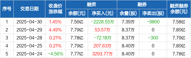 海兰信:融资净偿还2228.55万元,融资余额7.56亿元(04-30)