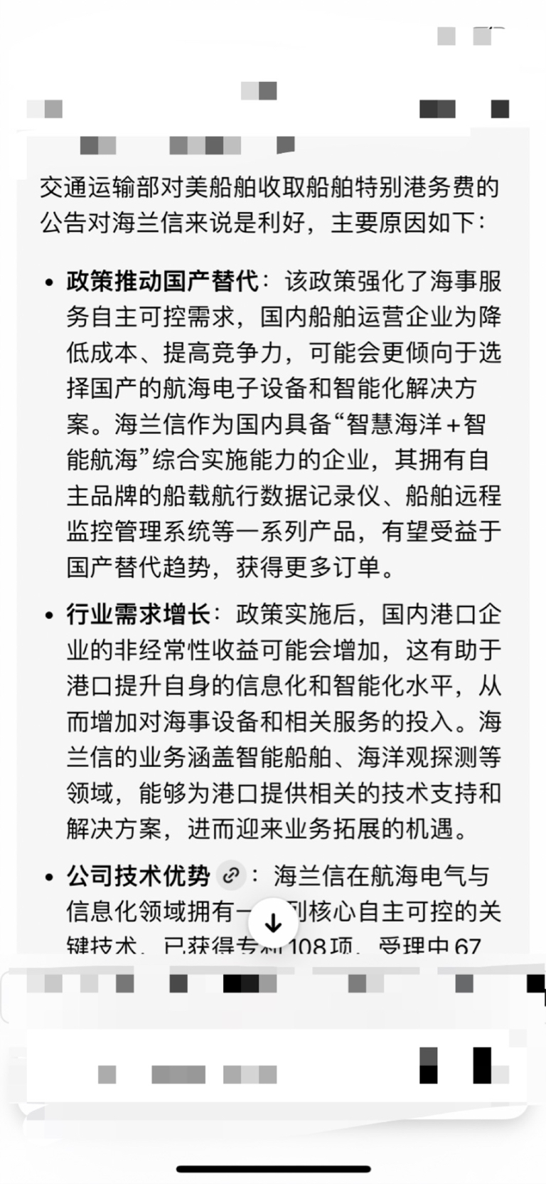 运输部发布的消息对海兰信是利好消息,对美国半导体,稀土不也制裁了吗,你看看这两个