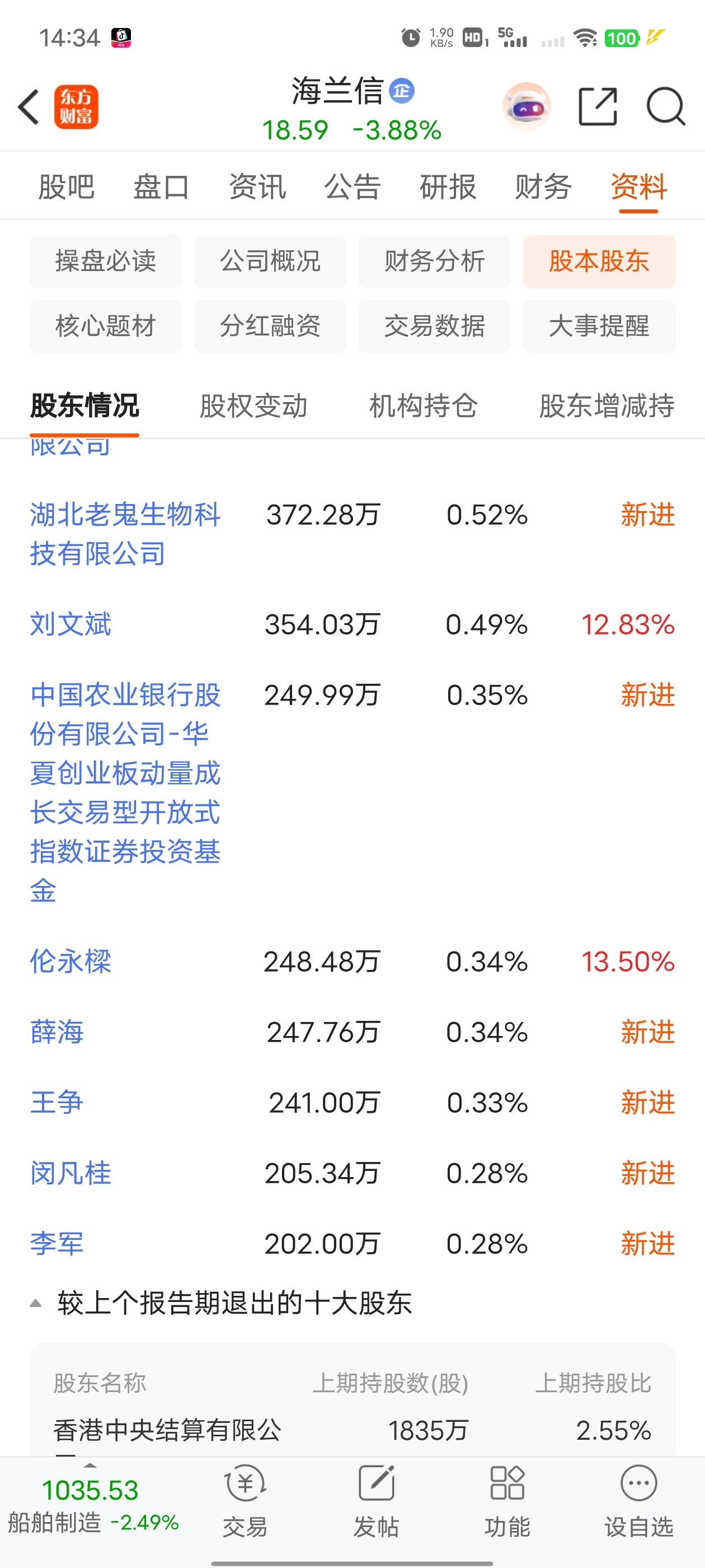 $海兰信(SZ300065)$ 新进这么多股东 老的跑路了
