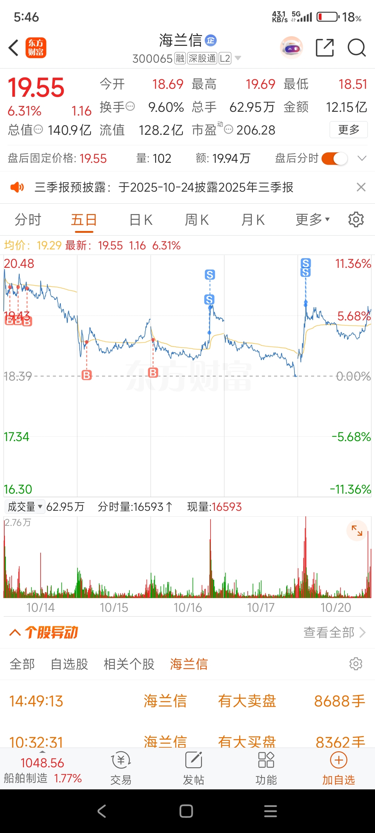 $海兰信(SZ300065)$ 感觉卖飞了
