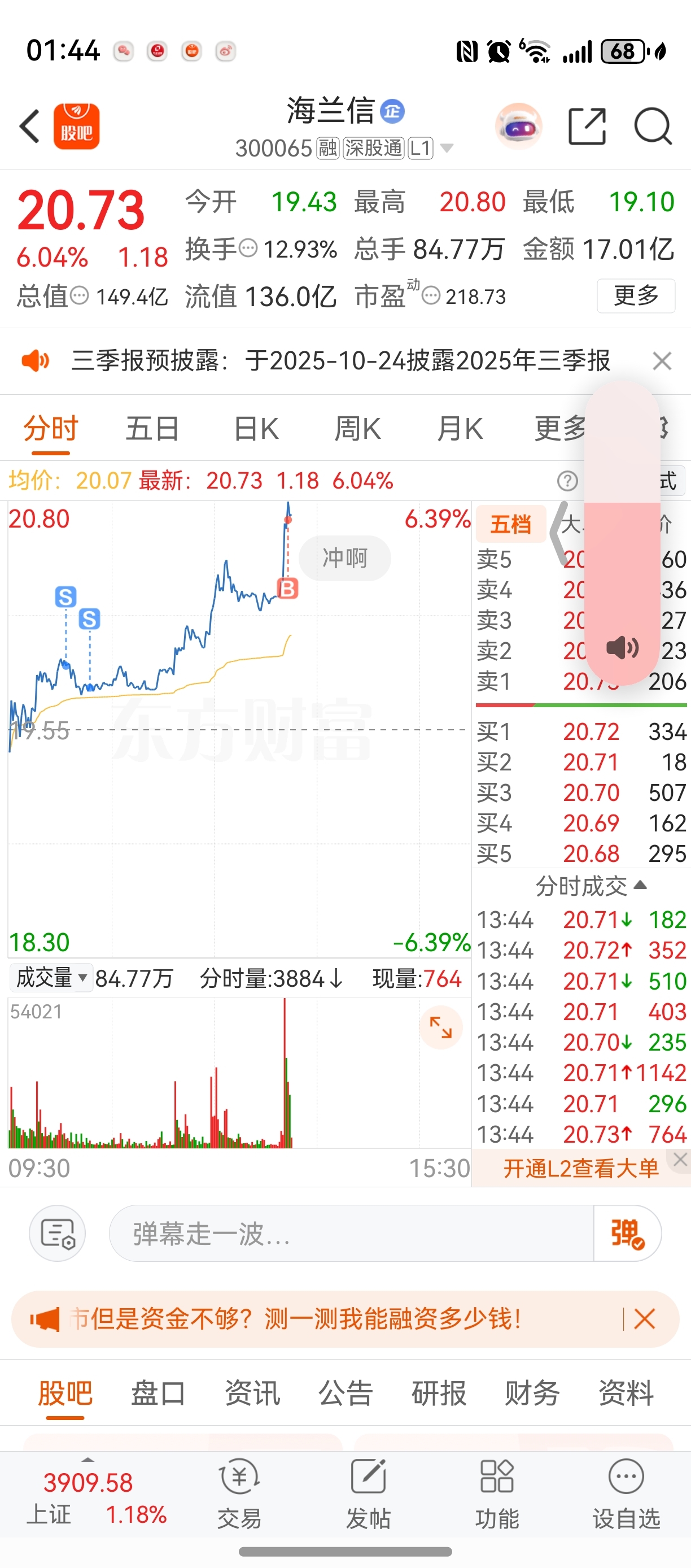 $海兰信(SZ300065)$ 佩服自己的SB操作