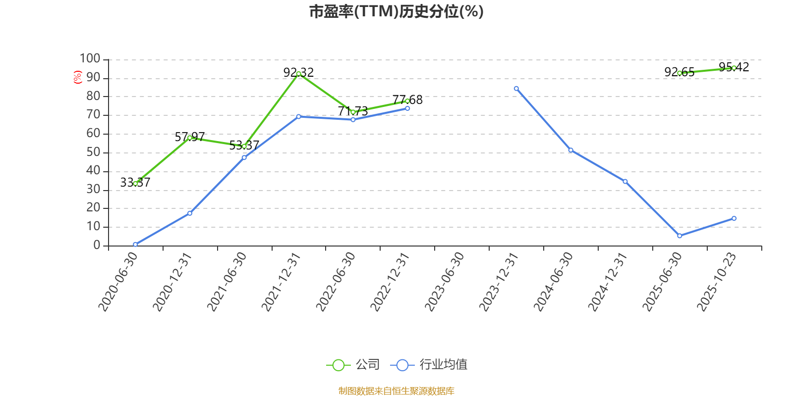 市盈率、市净率为负时,不显示当期分位数,会导致折线图中断。