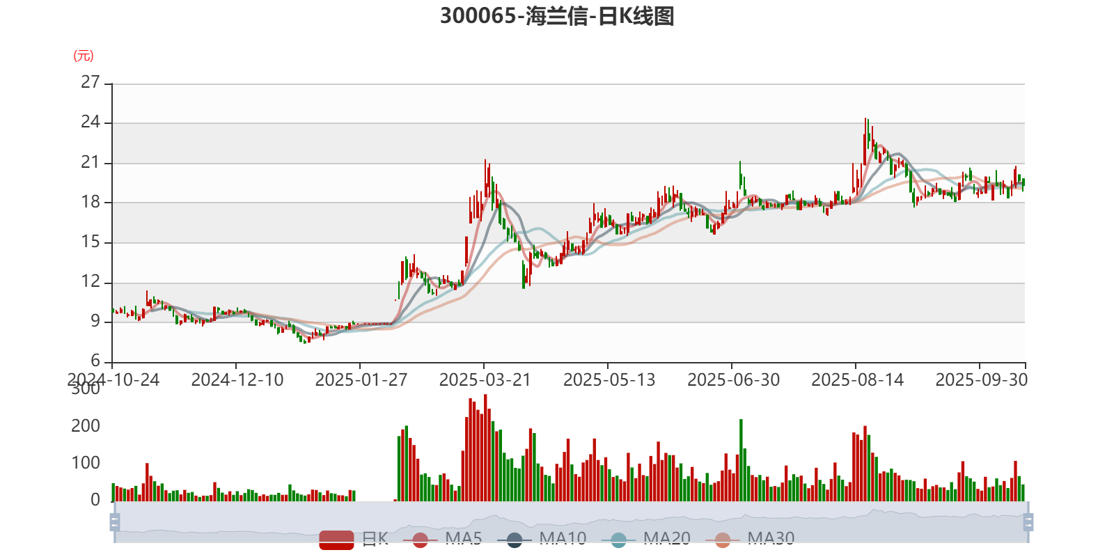 以10月23日收盘价计算,海兰信目前市盈率(TTM)约为368.23倍,市净率(LF)约7.94倍,市销率(TTM)约19.61倍。