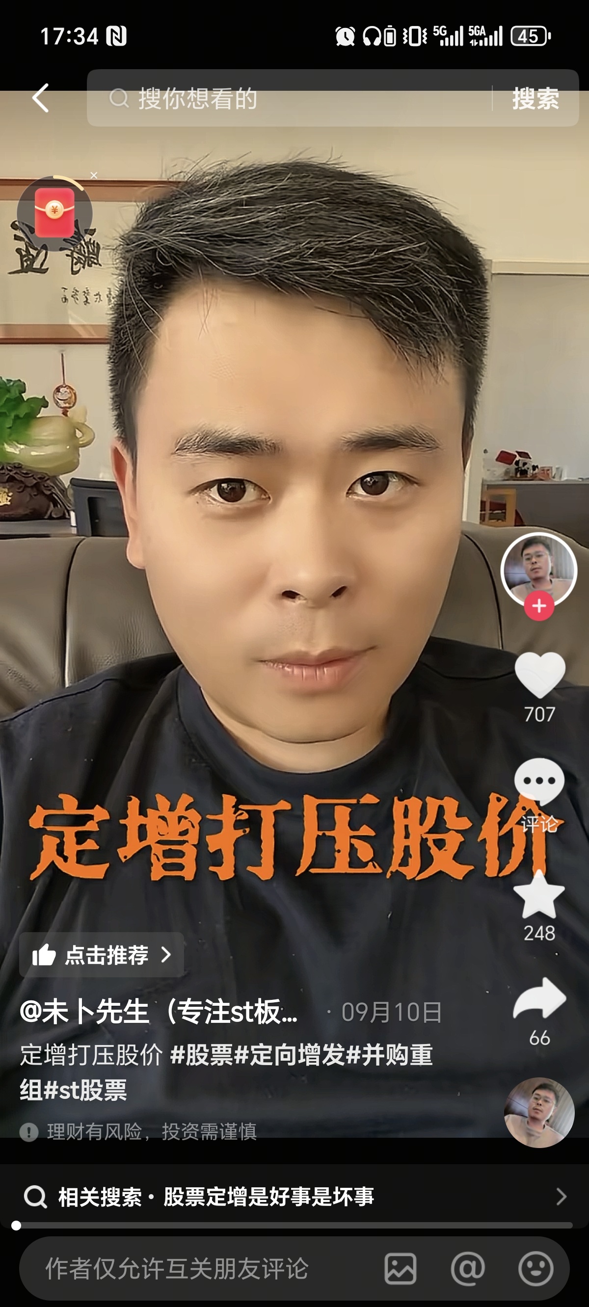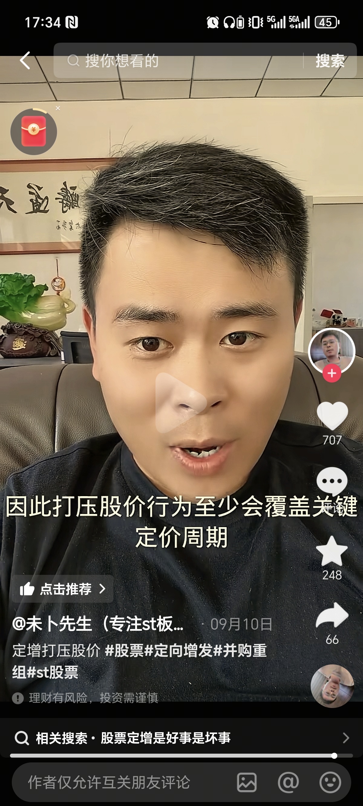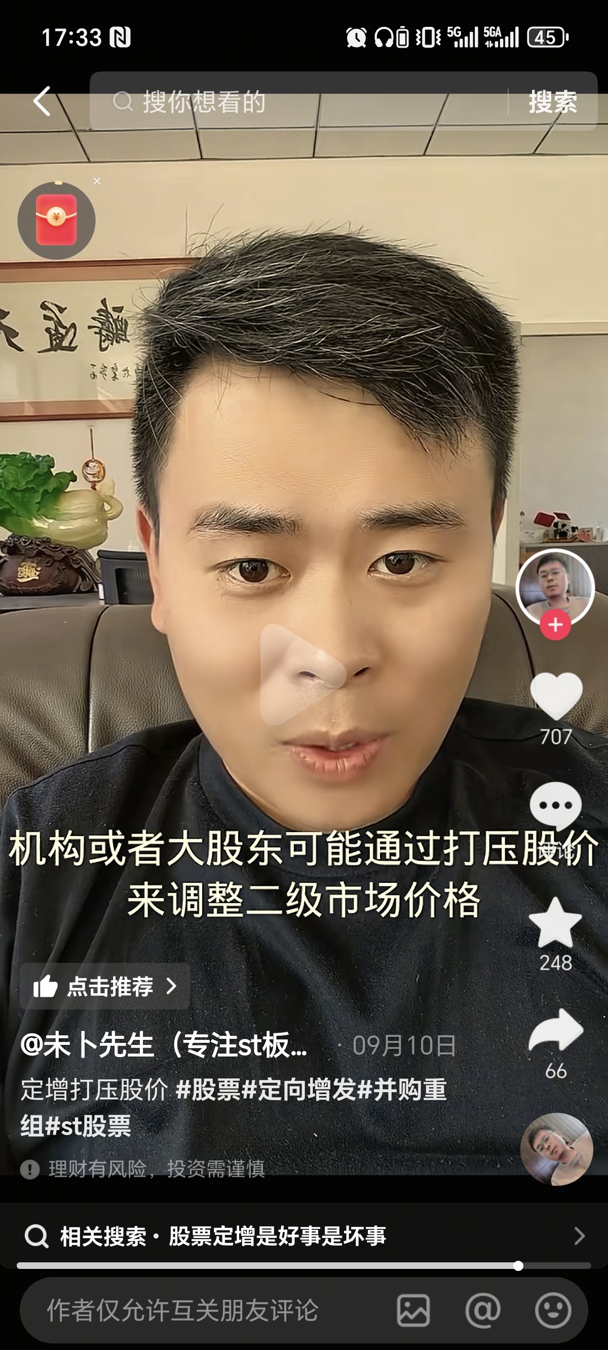 大家可以搜搜定增为什么要打压股价,知道为什么他这么多利好,还有人在打压了吧