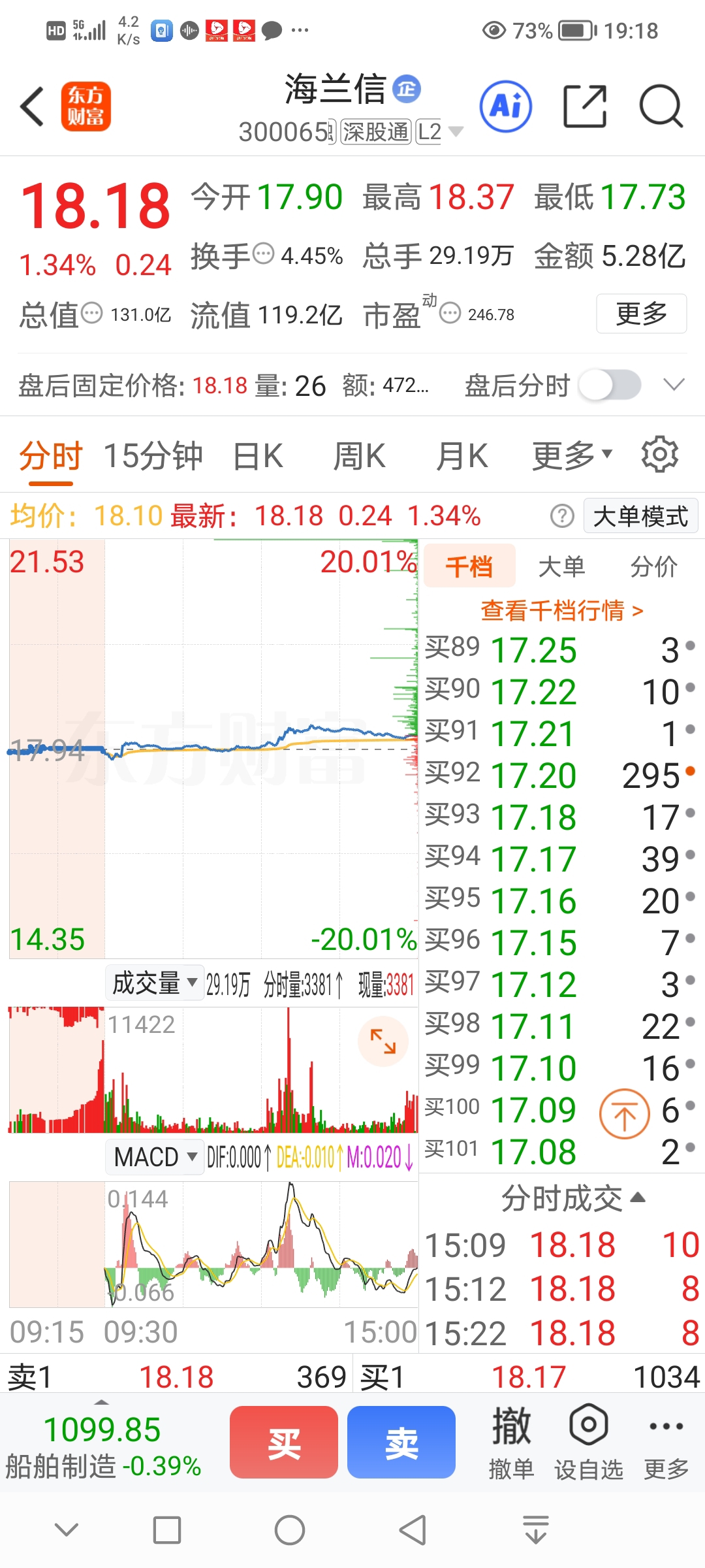 $海兰信(SZ300065)$ 今天很强啦,板块绿了你还能红一个点