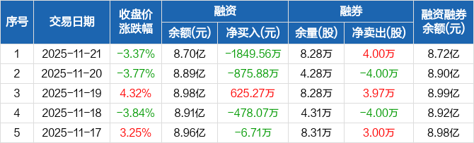 海兰信:融资净偿还1849.56万元,融资余额8.7亿元(11-21)