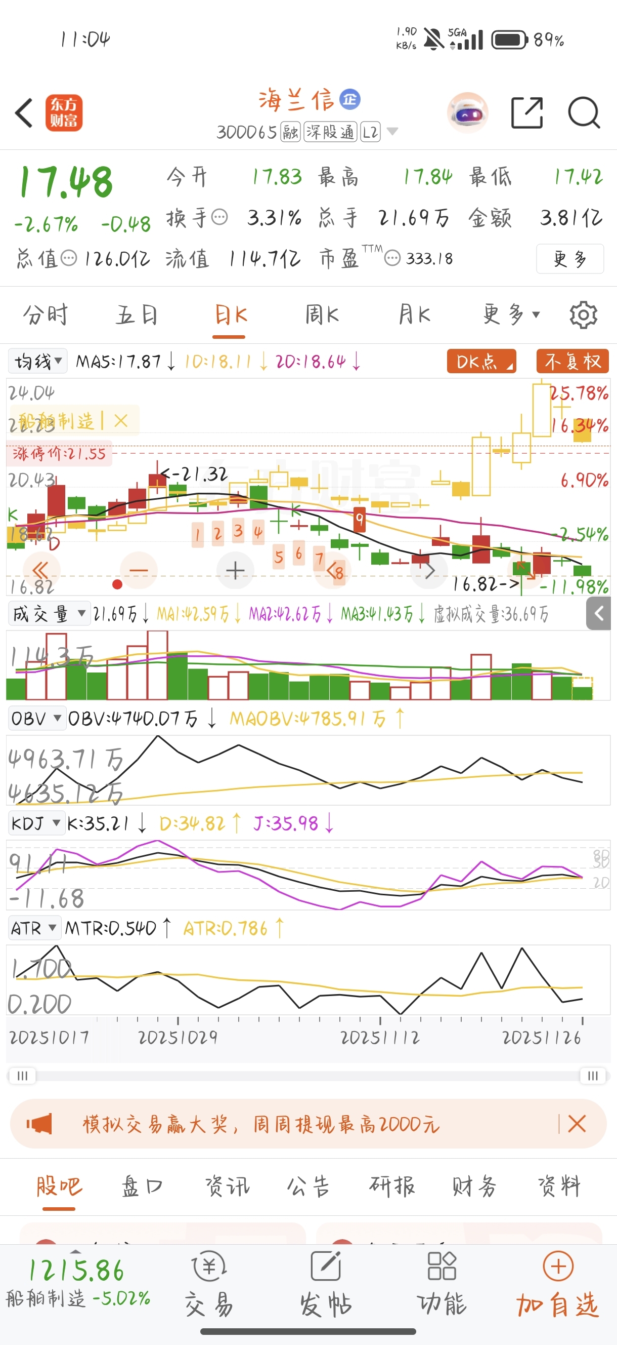 $海兰信(SZ300065)$ 真特,嘛,服了
