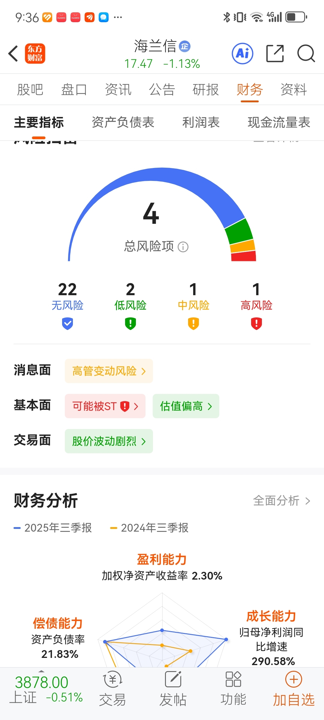 $海兰信(SZ300065)$ 风险高,请谨慎投资。