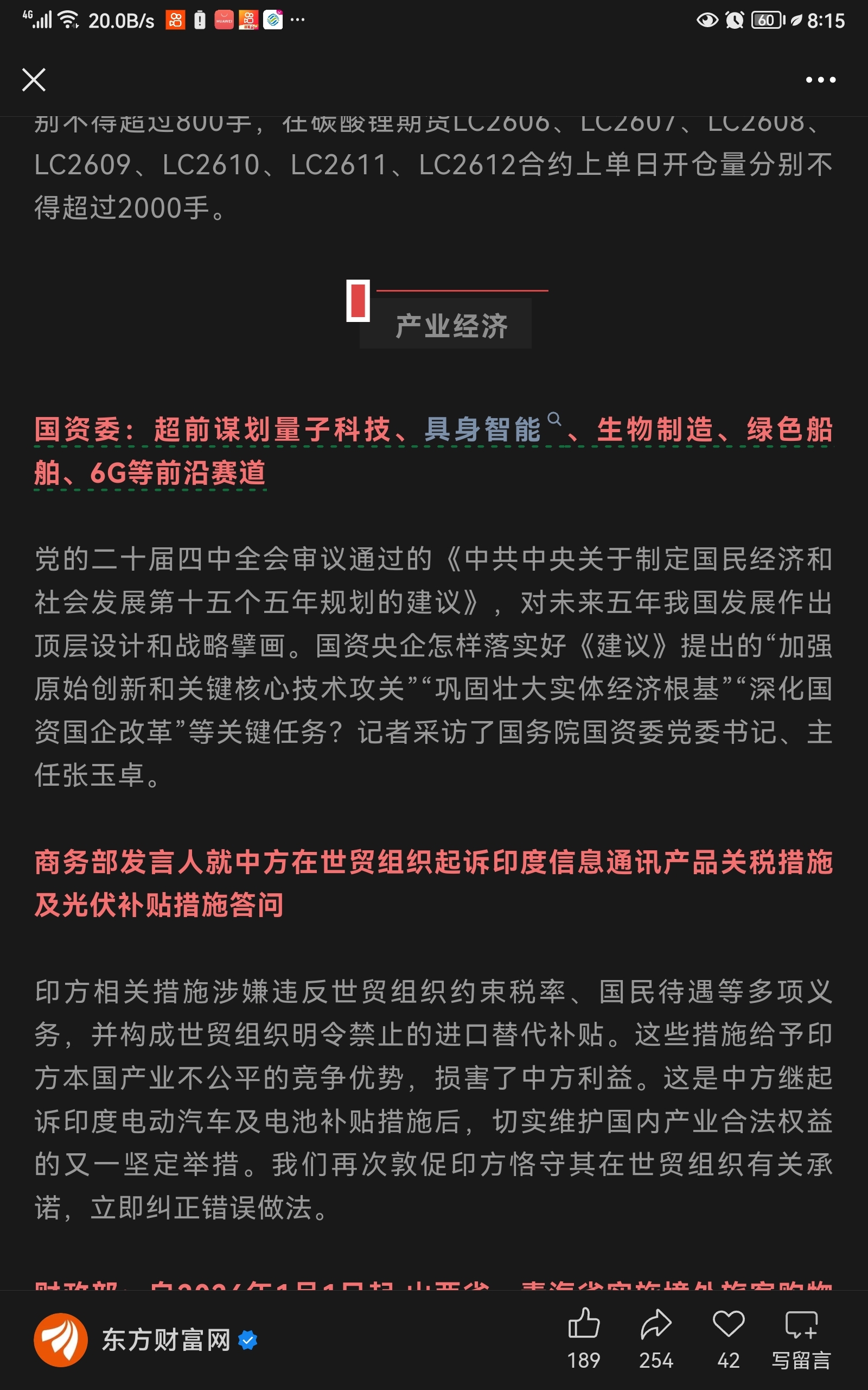 国资委:超前谋划量子科技、具身智能、生物制造、绿色船舶、6G等前沿赛道。绿色船舶