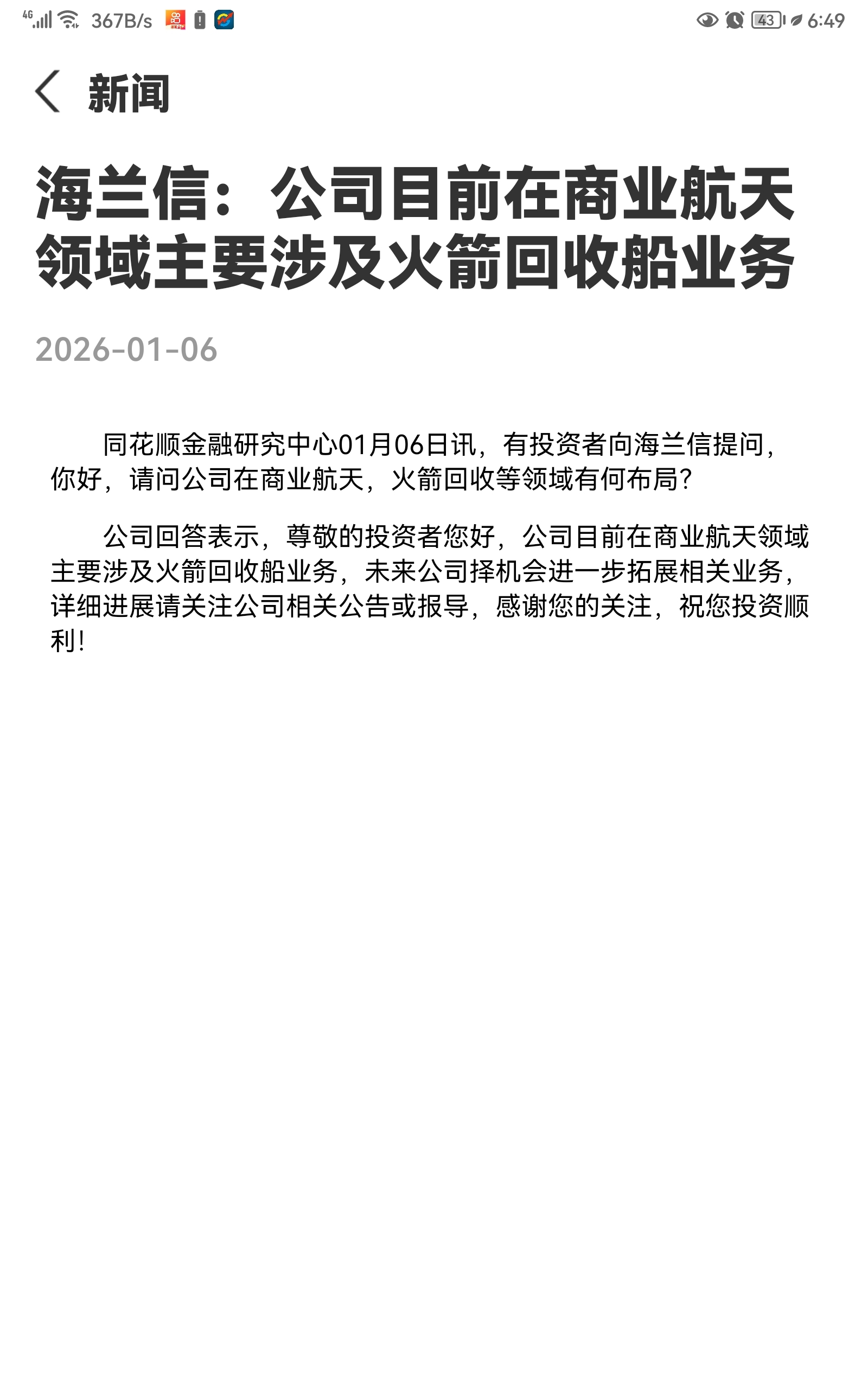$海兰信(SZ300065)$ 公司回应