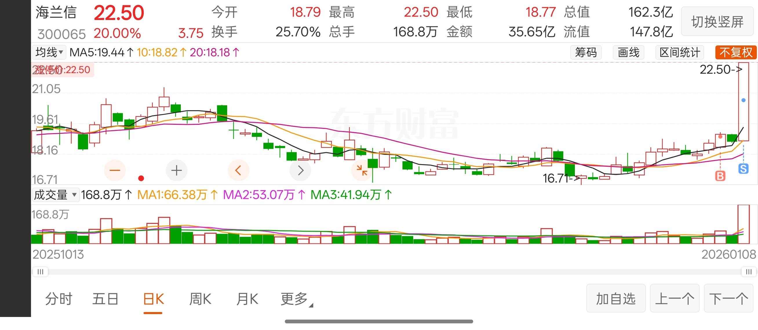 $海兰信(SZ300065)$ 我的乖乖,老子在节前最后一天在小账户清理了这把钱转东财账户,还好六号看这这货要走出来的形态,买回来了一些,但今天上午卖出去三分之一,下午涨停前卖出只剩三分之一了,