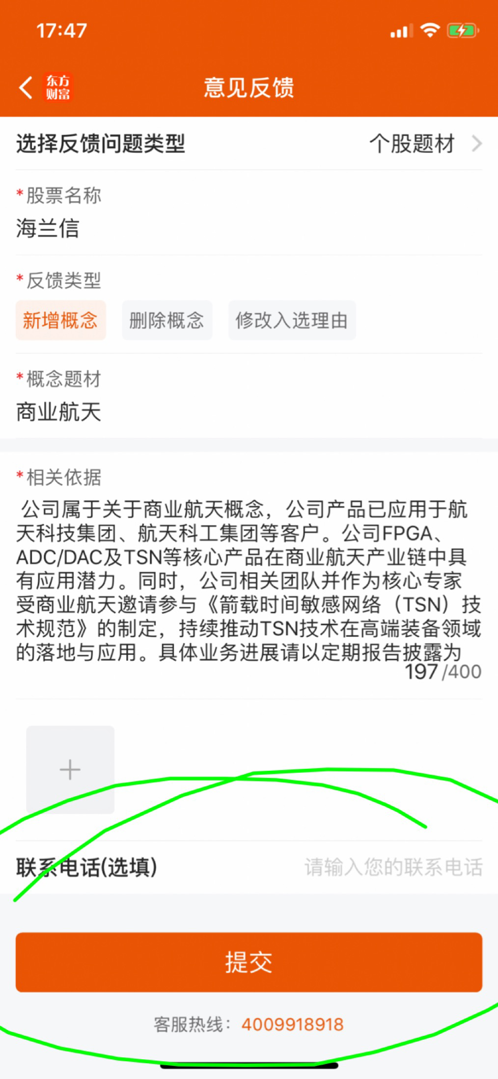 $海兰信(SZ300065)$ 海兰信#……股友一起动手,维护题材,添加概念板块“商业航天”。打开“资料”条目,看到“核心题材”条,点进去,大黑字最右边有“笔”图形和“参与维护”字条,点进去,反馈题材里面点“新增题材”,概念题材里面输入“商业航天”,相关依据下面可以输入中超火箭海上回收项目等理由,提交。本散已尽力。