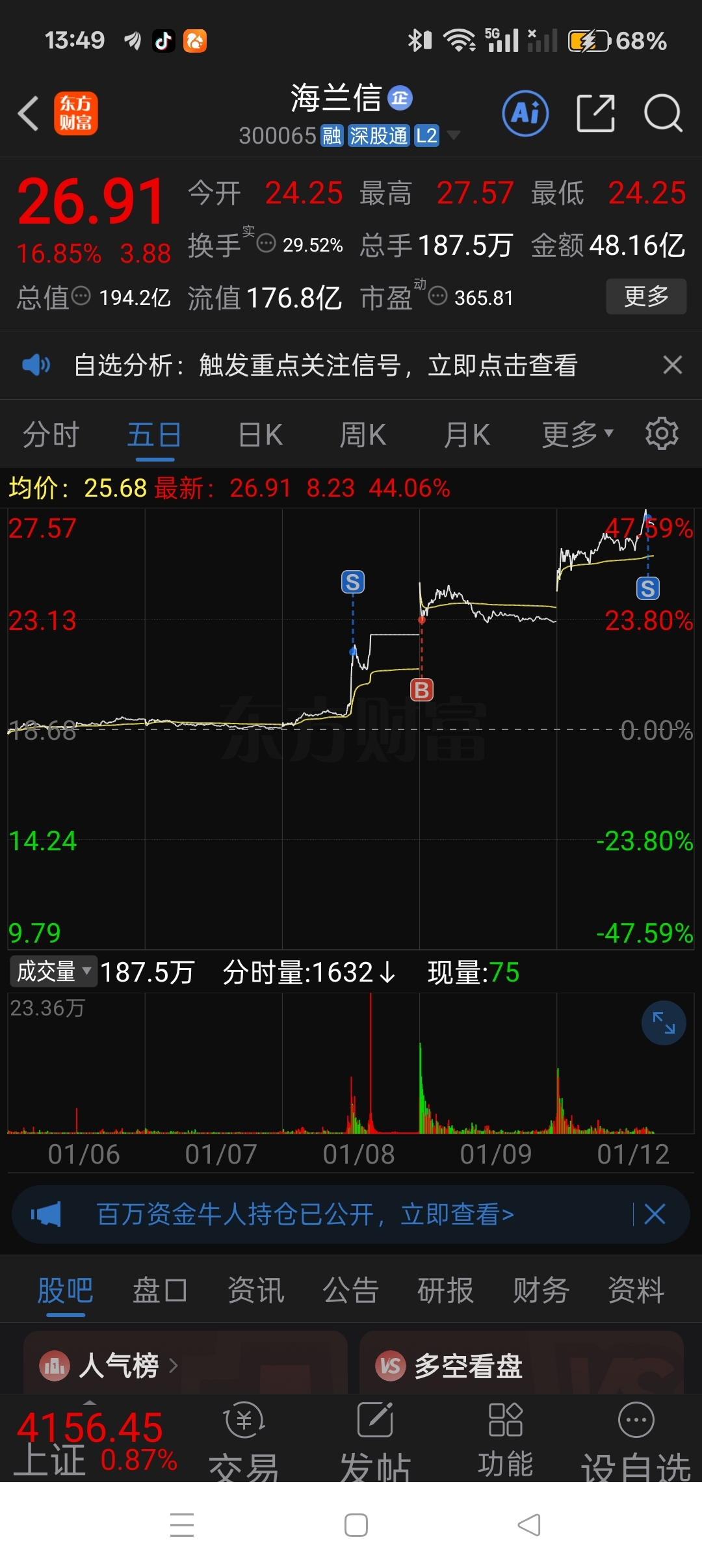 $海兰信(SZ300065)$ 先出了,等你下来