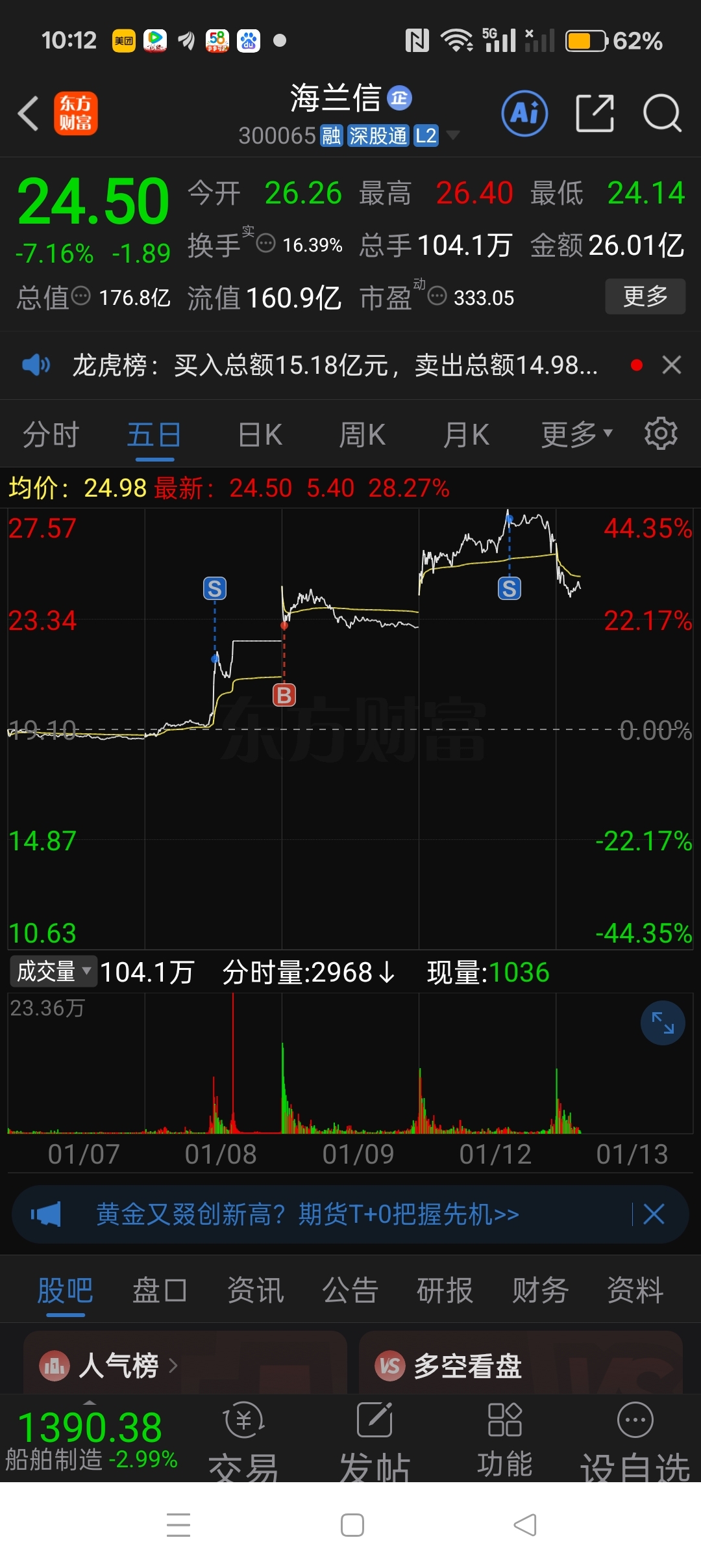 $海兰信(SZ300065)$ 幸好昨天卖了,下方缺口等你