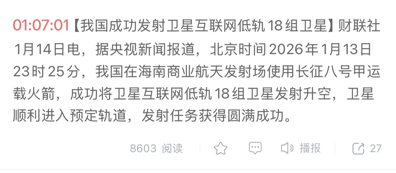 财联社凌晨1点多电报,长征八号甲发射任务获得圆满成功!!有戏了