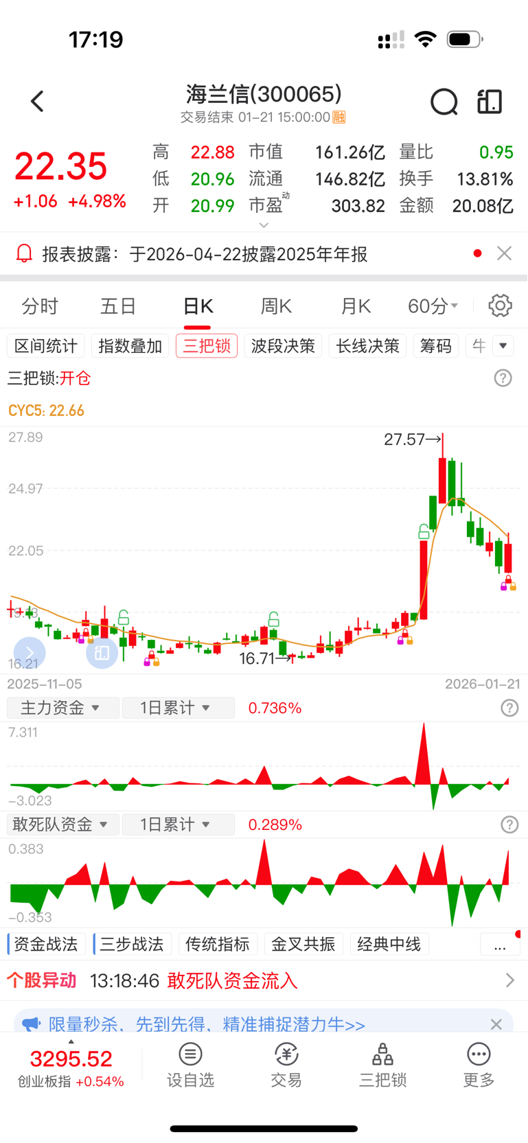 $海兰信(SZ300065)$ 希望明天不当小弟直接当大哥指南针指标提示三把锁信号 多空资金流入 敢死队流入 主力流入 开始强势起来 海上回收唯一龙头 祝成功 条件允许拉个涨停让支持海兰信的小散们过个好年同意点赞