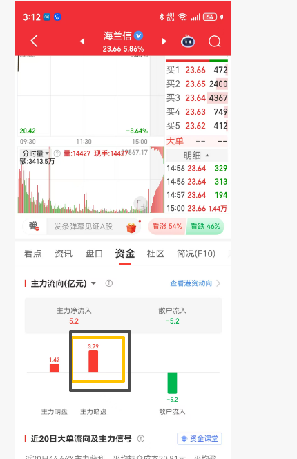海兰信今日暗盘流入3.79亿,明日继续看涨