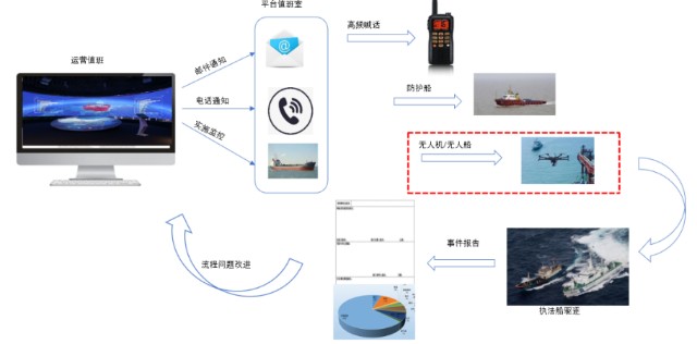 2、预警预判。雷达算法不断优化,抑制虚假报警率;设置抛锚、捕捞等行为的警戒模型;值班人员二次警戒判别。