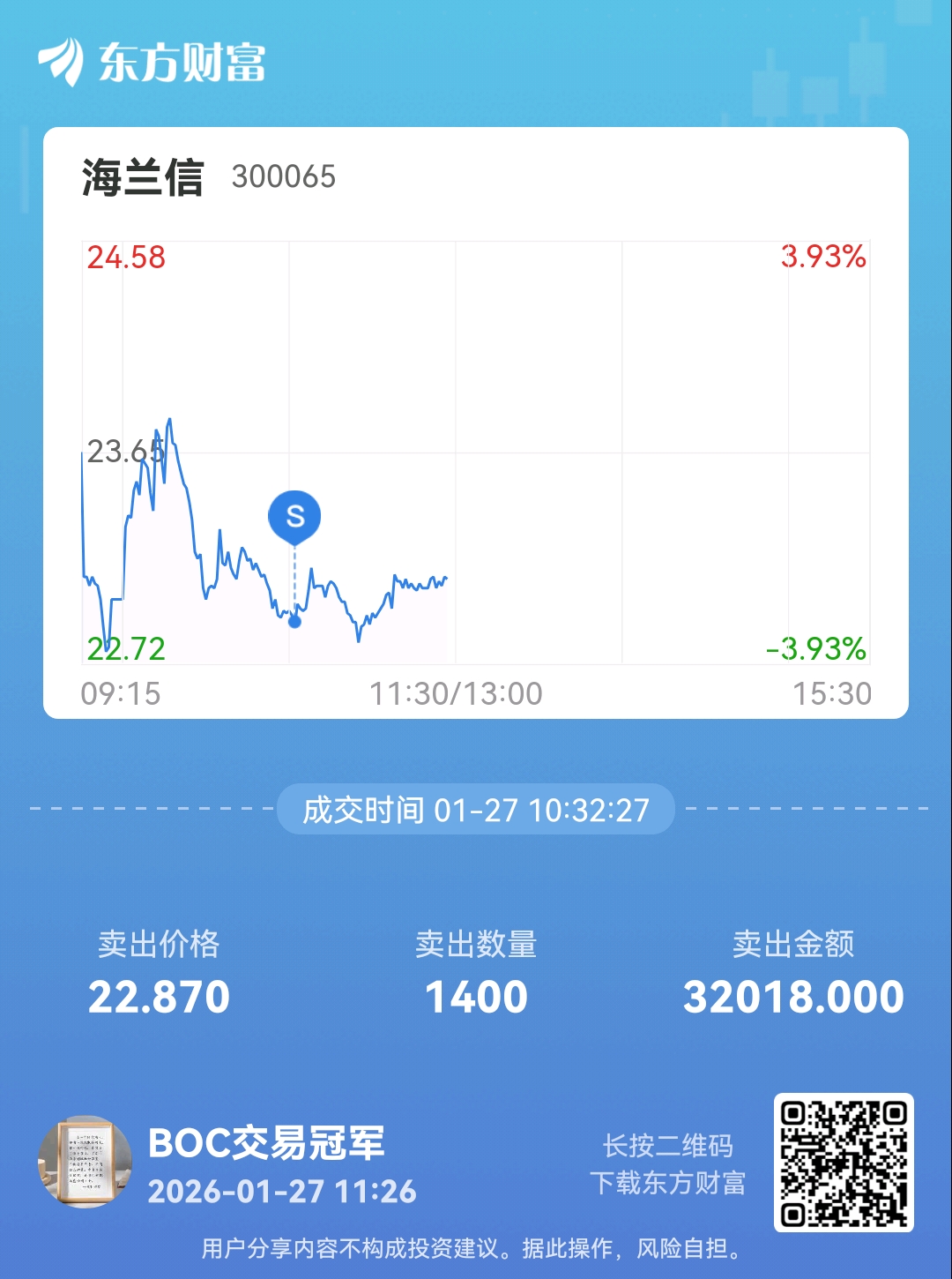 温馨提示: 1.根据《证券法》规定,禁止编造、传播虚假信息或者误导性信息,扰乱证券市场;2.用户在本社区发表的所有资料、言论等仅代表个人观点,与本网站立场无关,不对您构成任何投资建议。用户应基于自己的独立判断,自行决定证券投资并承担相应风险。《东方财富社区管理规定》