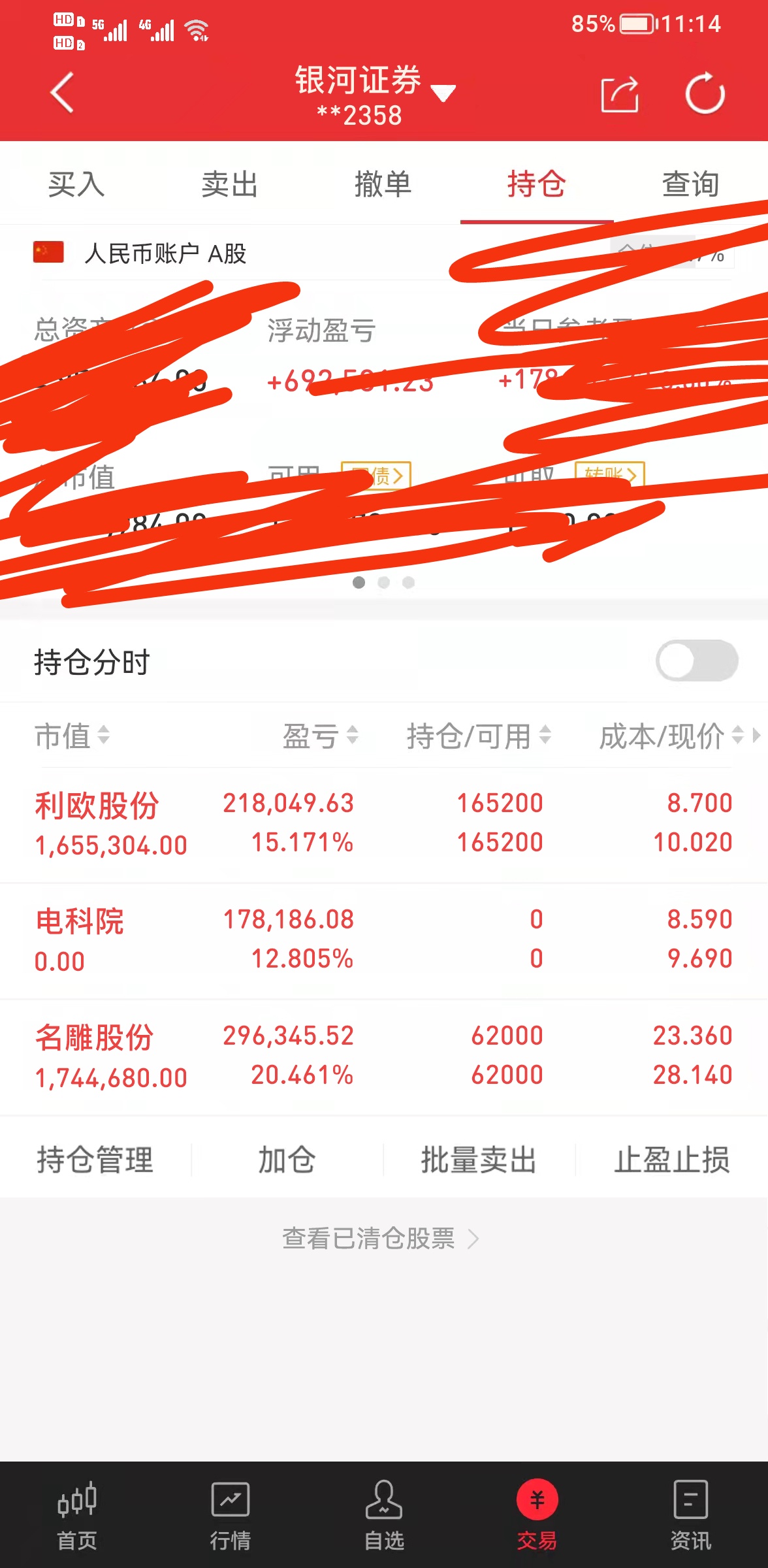利欧股份继续持有。将电科院止盈出局。昨天进的名雕股份,今天太给力!持有20cm,期待明天的精彩!