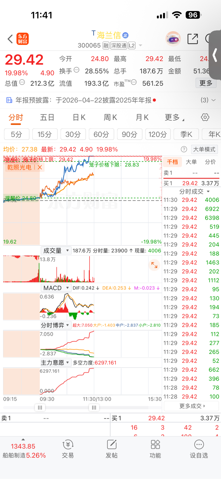 $海兰信(SZ300065)$ 板上出得太狠了,能守住不?
