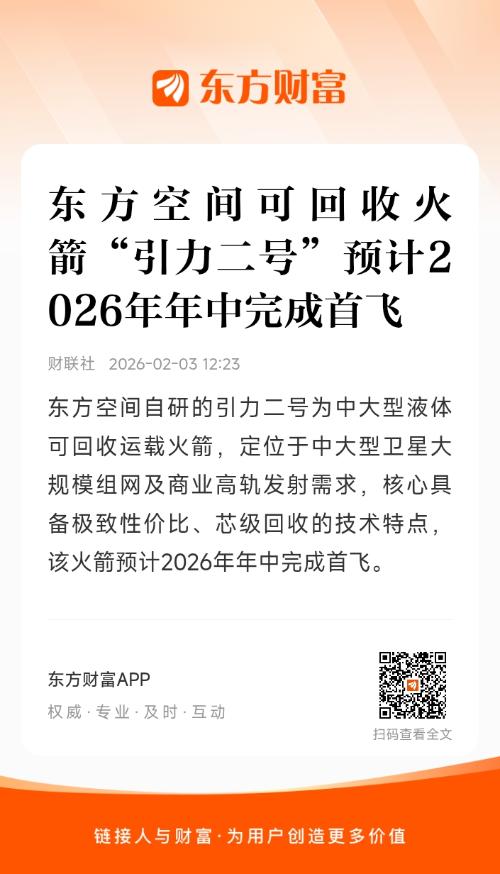 东方空间自研的引力二号为中大型液体可回收运载火箭,定位于中大型卫星大规模组网及商业高轨发射需求,核心具备极致性价比、芯级回收的技术特点,该火箭预计2026年年中完成首飞。