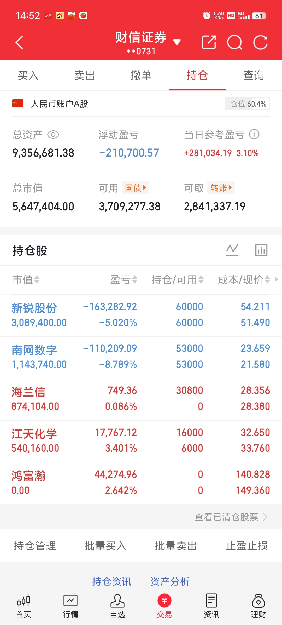 中长线南网数字继续新锐继续持有待涨,鸿富瀚下车了江天化学今日做T继续,尾盘上车海