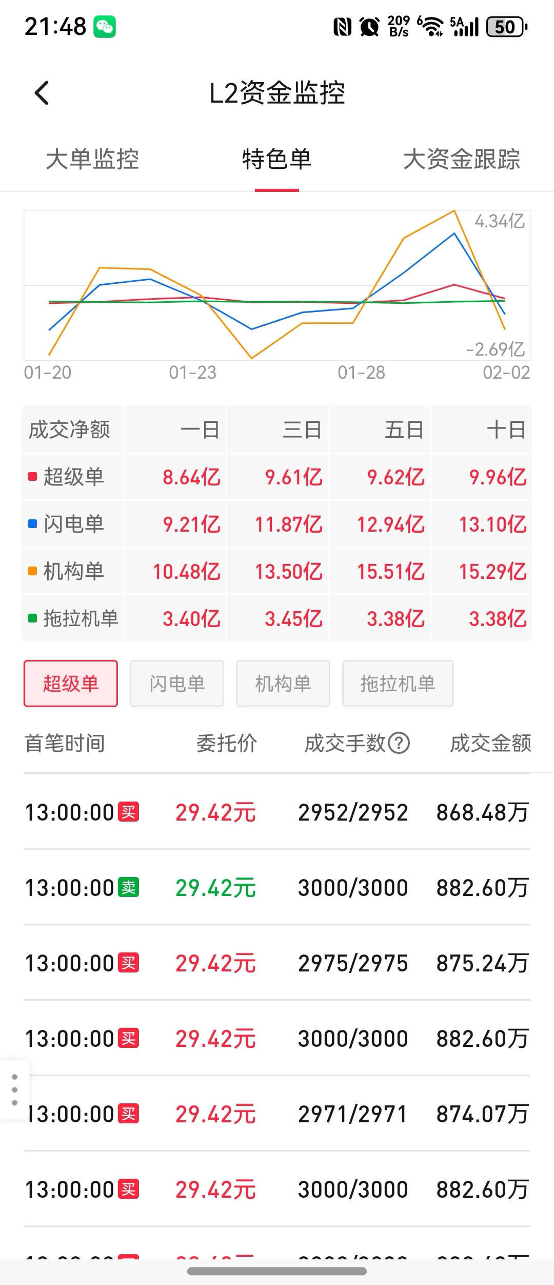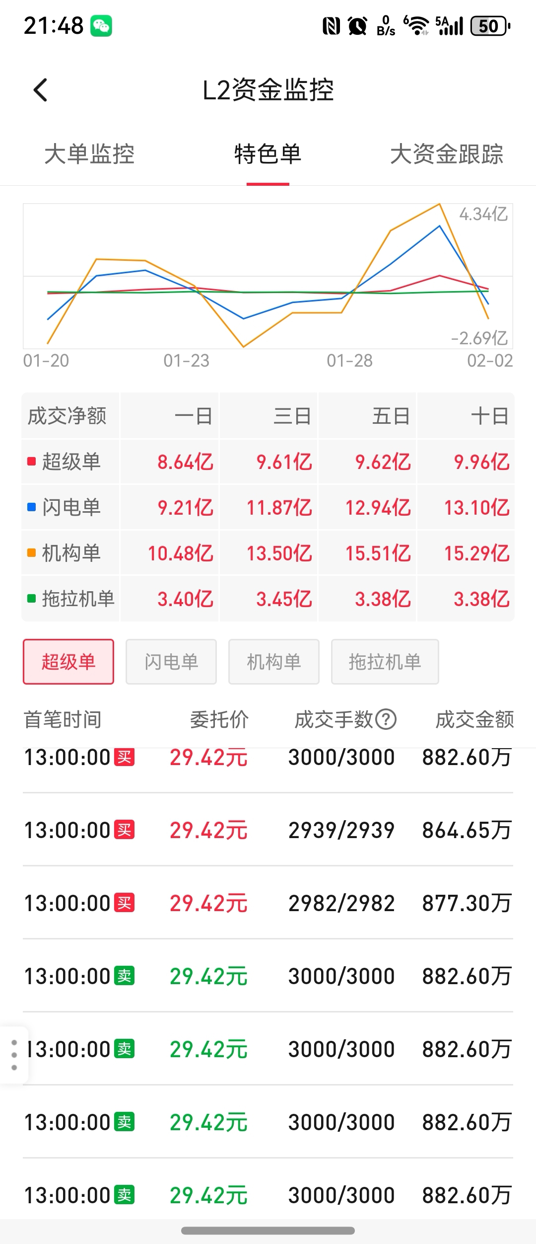 家人们糊涂呀,一点钟的三个亿单子都是小单出大单在吃进去呀。就是故意撤单让你们都觉