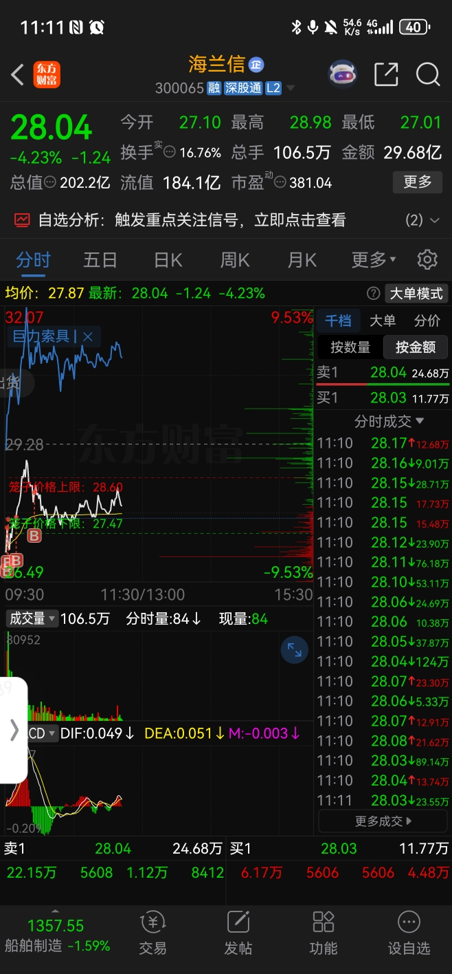 $海兰信(SZ300065)$ 跟巨力,看巨力脸色