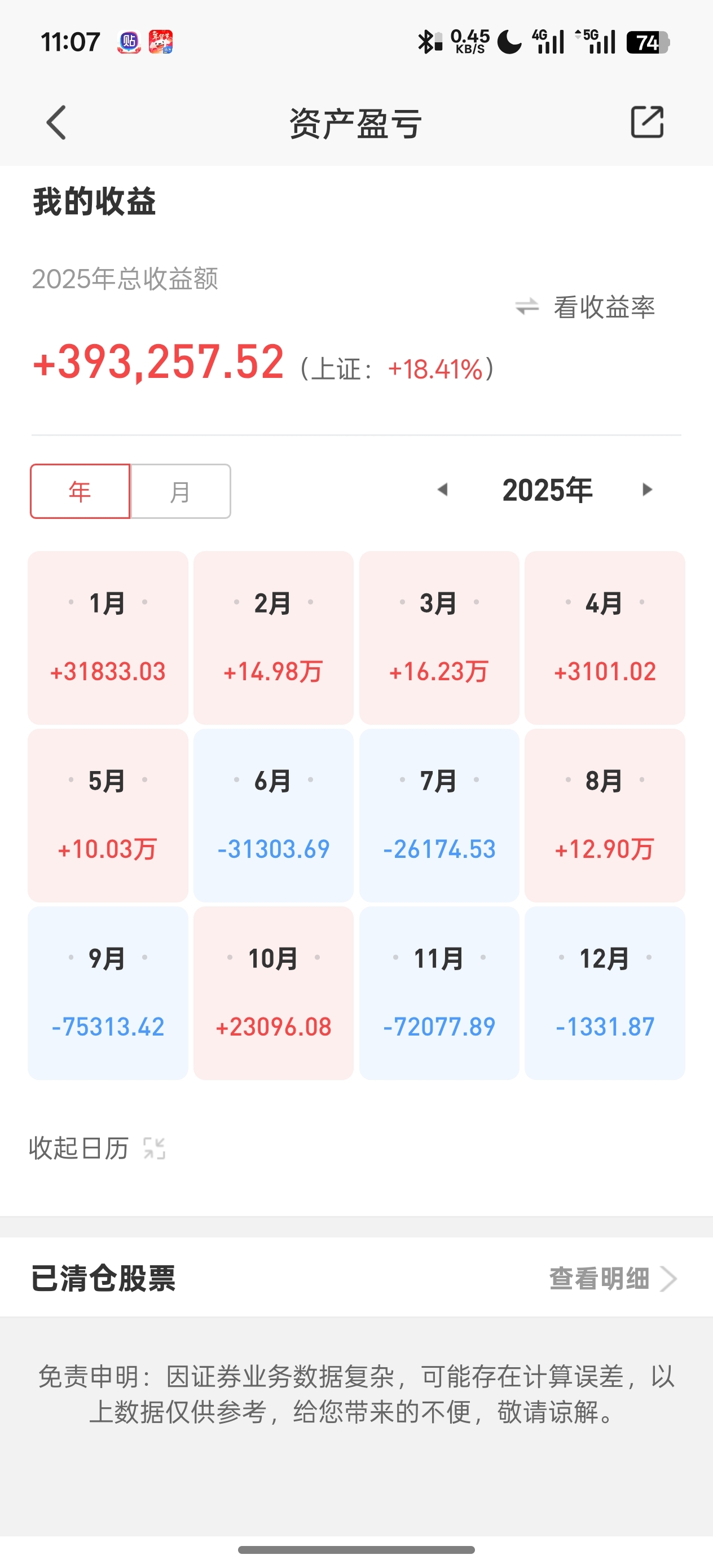 上个月仓位大是因为有两融账户的融资,上个月的17万多利润完全是因为运气。不能把运气当做能力。最近一年账面上的确赚了几十万,但是最近10年账面上才刚回本而已,甚至把这些年的工资结余算上都没回本。所以我上个月19日到26日之间已经把两融账户注销了,把普通账户也清仓了大部分。大部分资金转到家人卡里存定期了和预约提前还部分房贷。我现在个人资金只有不到10万,我准备下周一开始只用不超过2万元启动资金放在股市里练手。如果这2万元再亏3000元的话我就无条件投降,只能去销户。