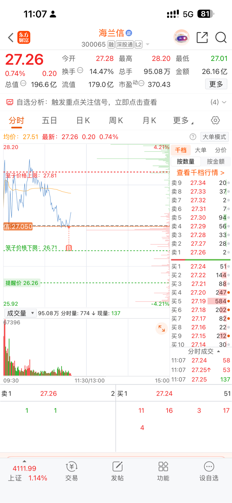 $海兰信(SZ300065)$ 好像跌不动了来薅羊毛啦