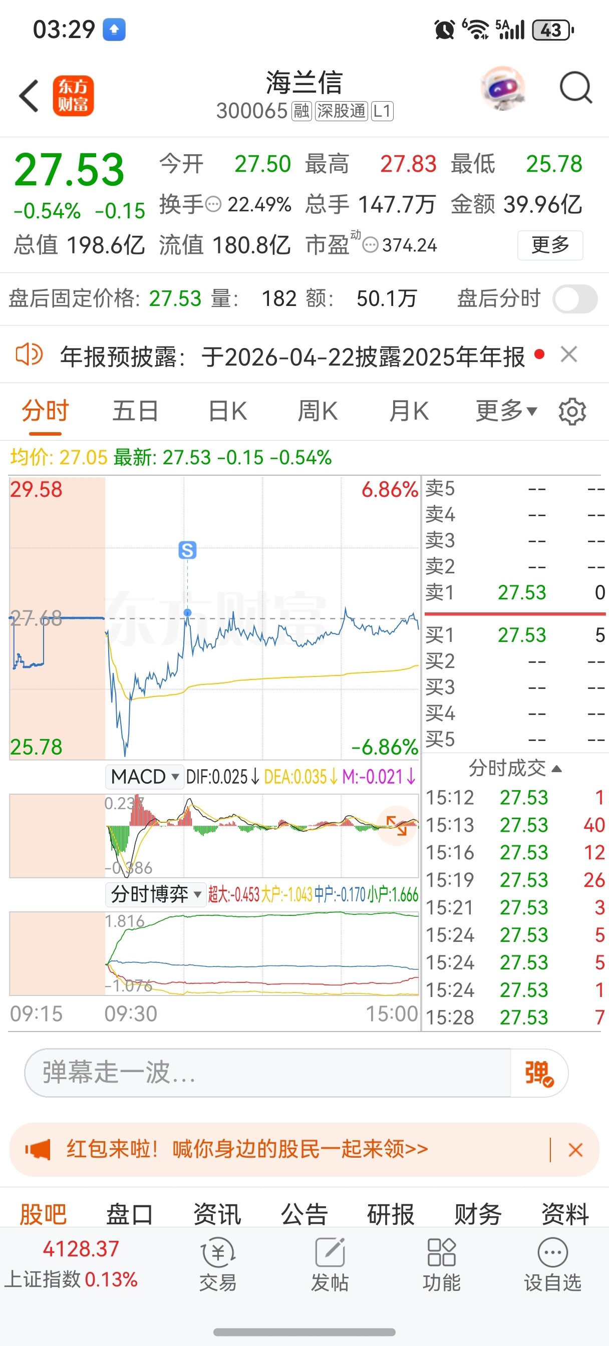 $海兰信(SZ300065)$ 垃圾昨天尾盘买,心脏病都下出来了