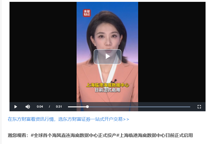 海兰信-全球首个海风直连海底数据中心正式投产#上海临港海底数据中心日前正式启用