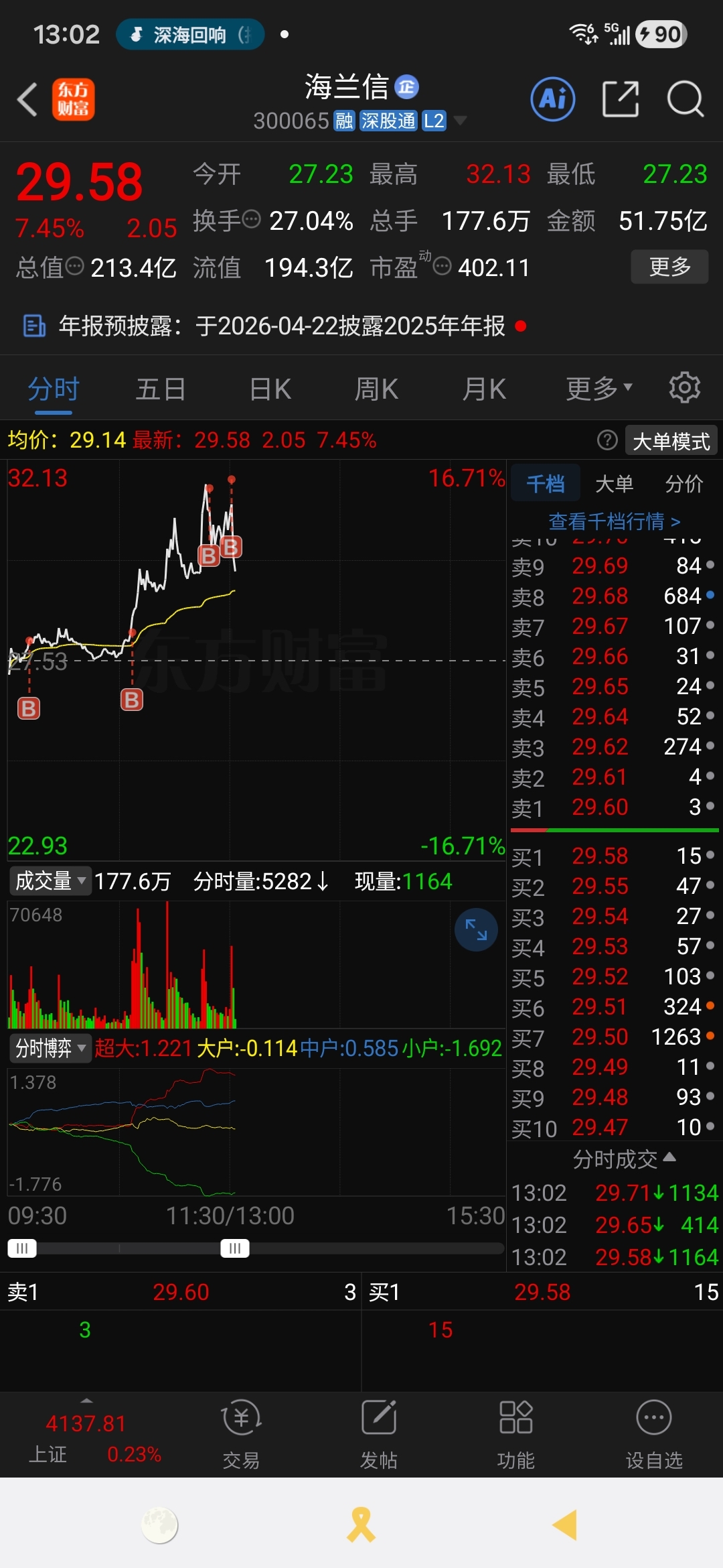 $海兰信(SZ300065)$ 难受住了。你又一次负我
