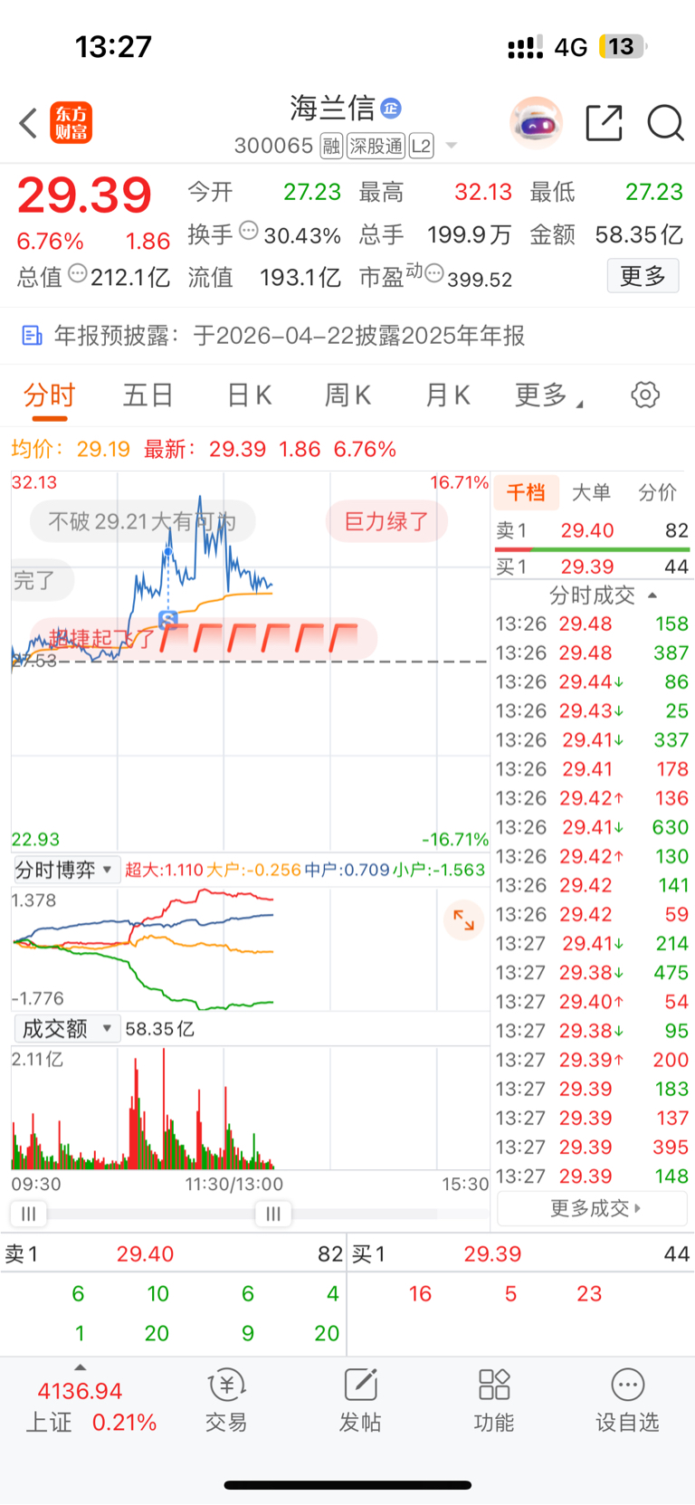 以我多年对海兰信的判断,今天只适合卖不适合买。接下来会震荡向下,然后横盘一段时间