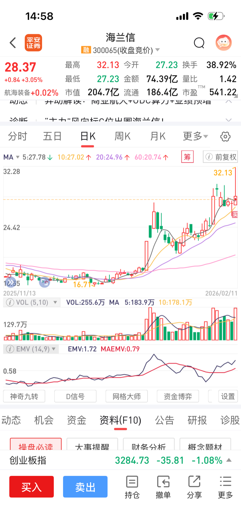 $海兰信(SZ300065)$ 太狠了,山顶的兄弟13个点的套