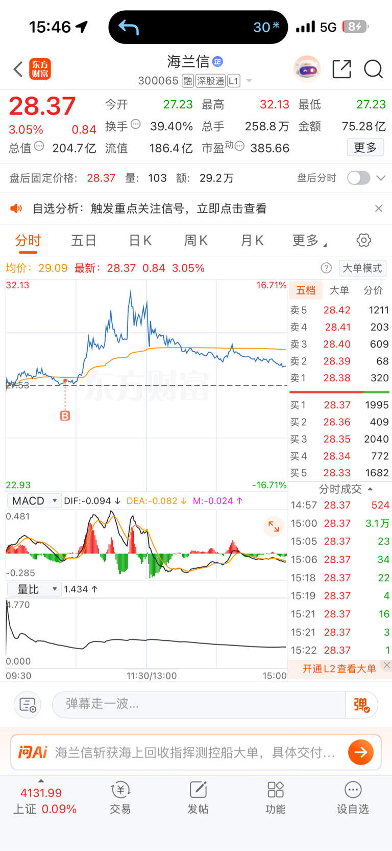 $海兰信(SZ300065)$ 牛逼这都能套我?