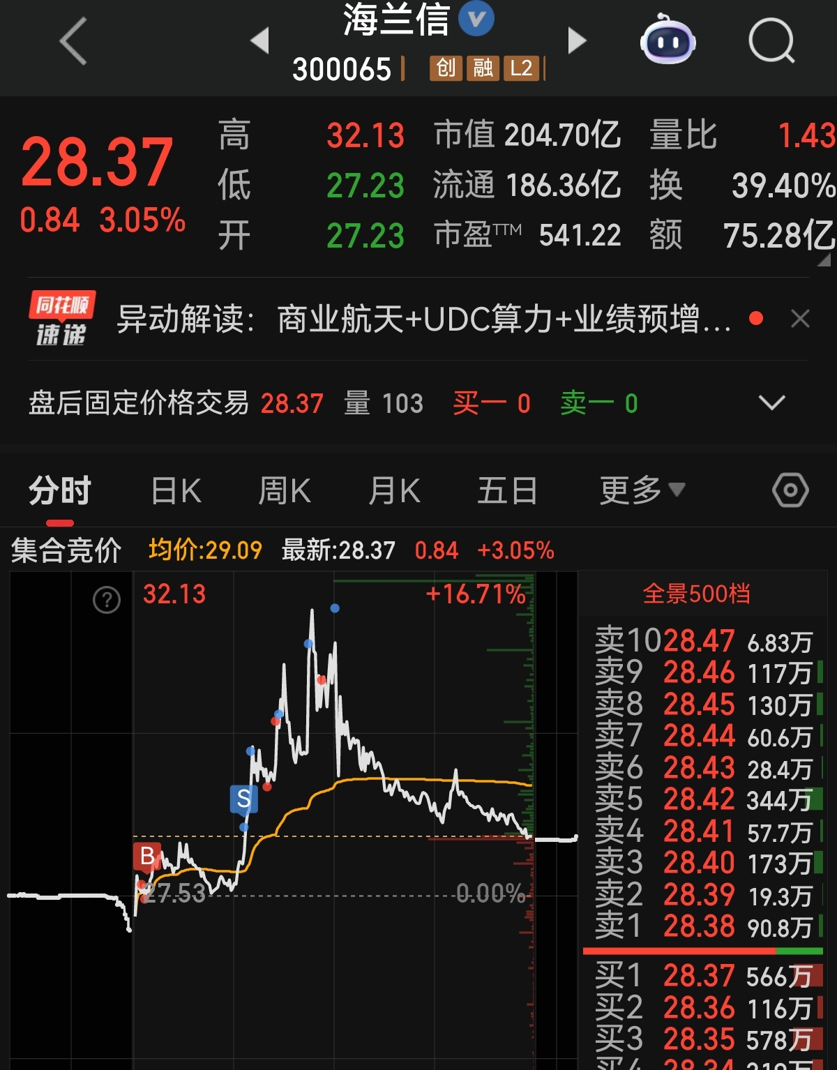 $海兰信(SZ300065)$ 今天留了个底仓剩下的都出了成本-10 过完年再回来加仓继续搞