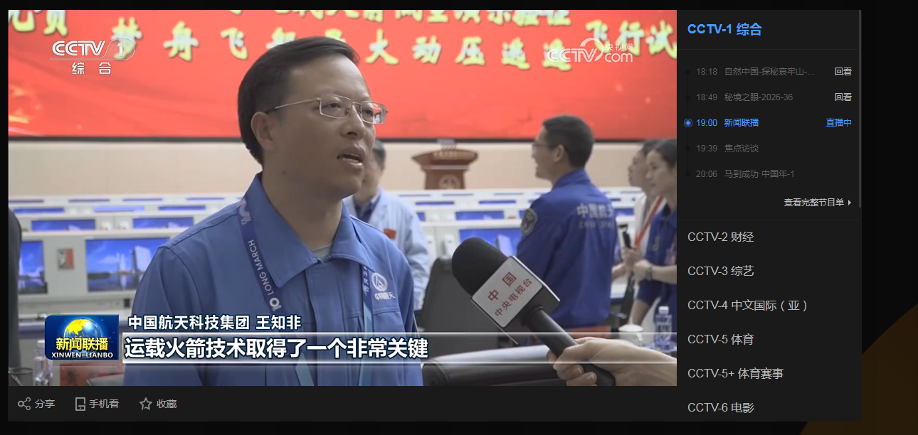 今晚新闻联播插播了火箭在回收船旁海平面着陆的画面,标注“我们成功完成了海面软着陆