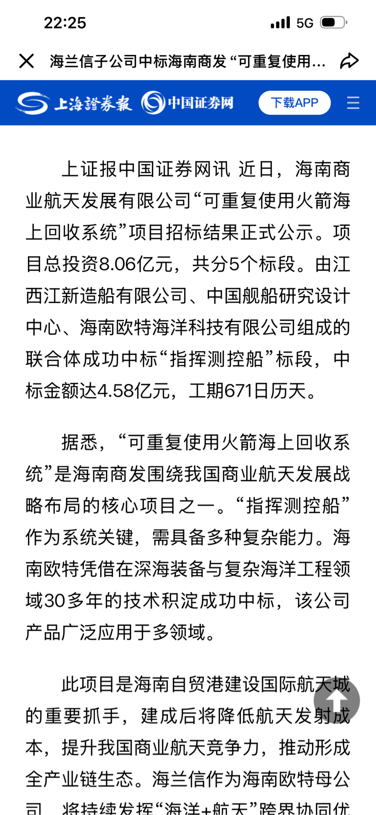 $海兰信(SZ300065)$ 4.58 亿的合同是海兰信中标的 明天开始补涨