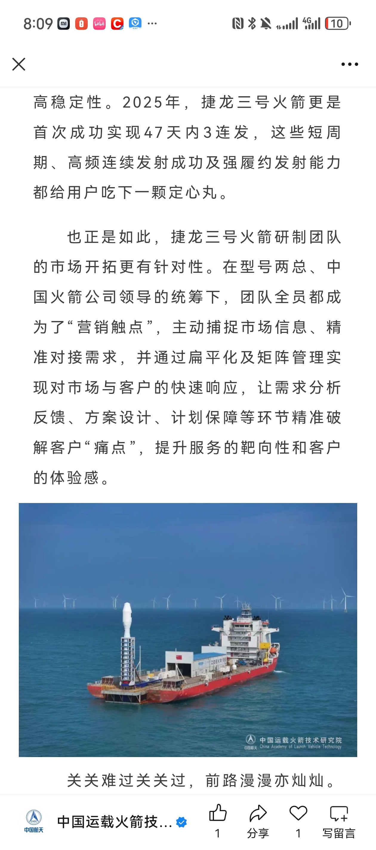 $海兰信(SZ300065)$ 刚刚还是在船上发射成功了
