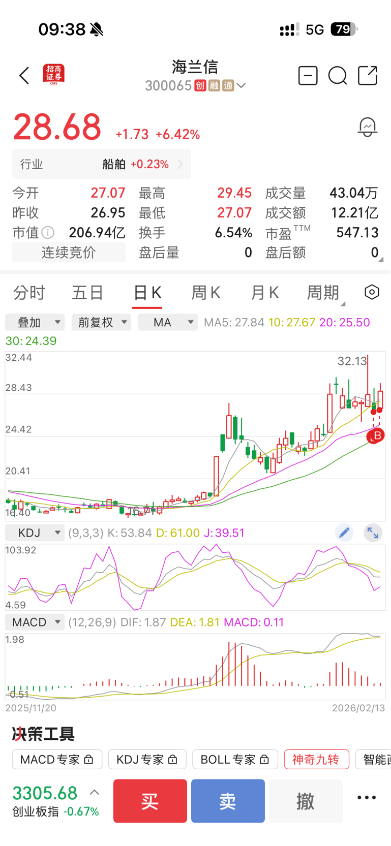 $海兰信(SZ300065)$ 人弃我取,昨天尾盘买了一层打底,开盘符合预期又补了两层