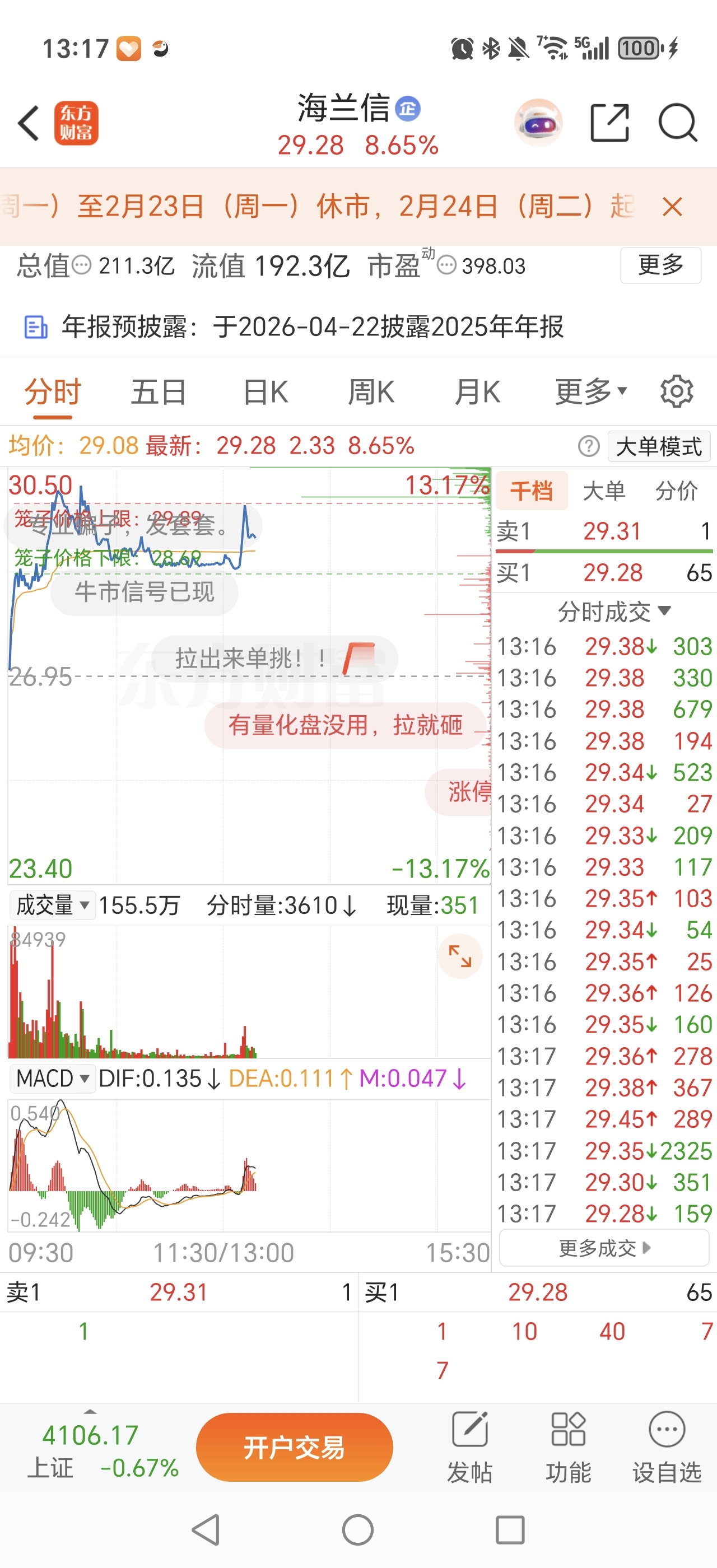 $海兰信(SZ300065)$ 总有坏人砸盘啊