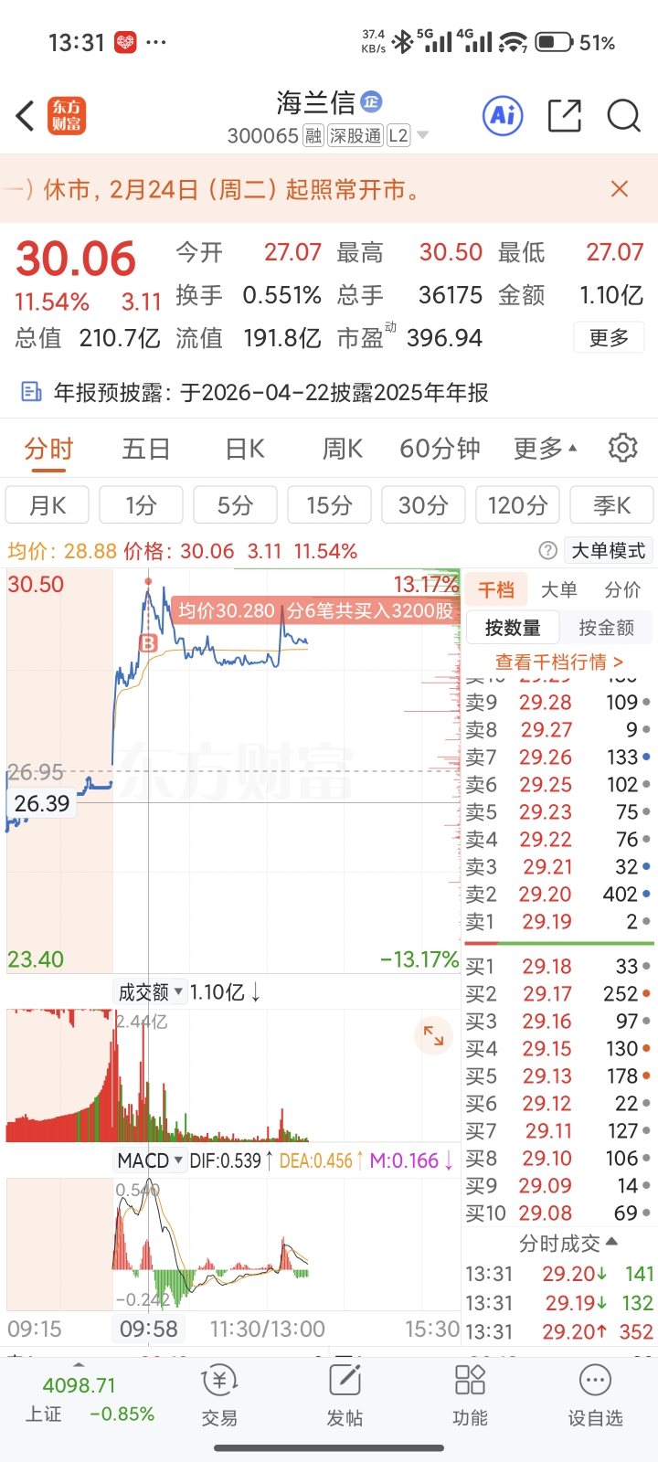 $海兰信(SZ300065)$ 大声告诉我什么时候解套