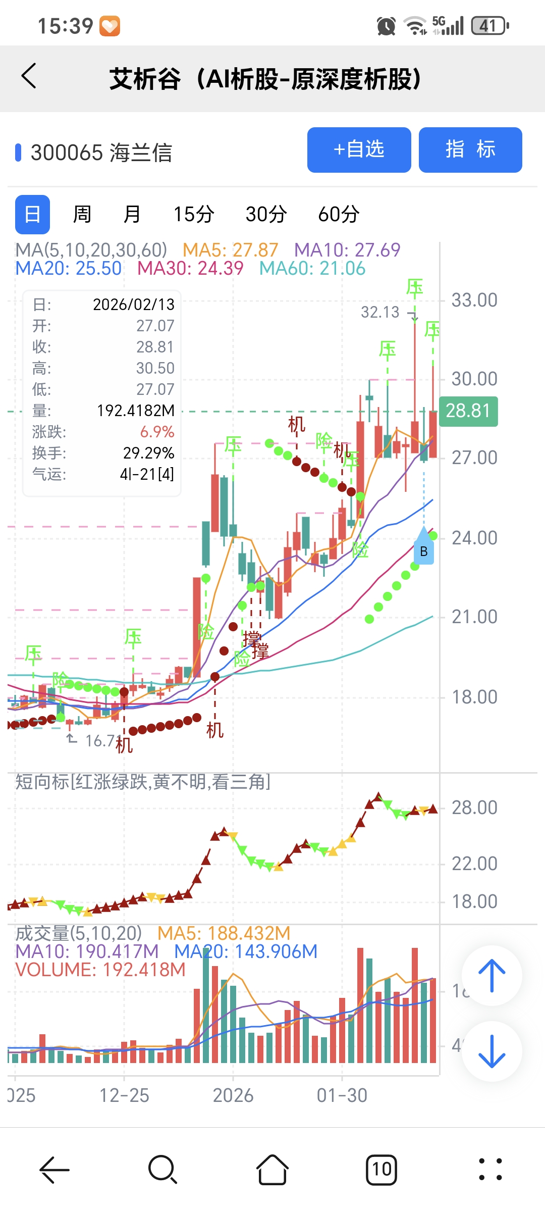 AI模型选股,量化指标识别关键点,简单技术分析确定买卖点,结合量化和人工综合运用,才能有优势。海兰信