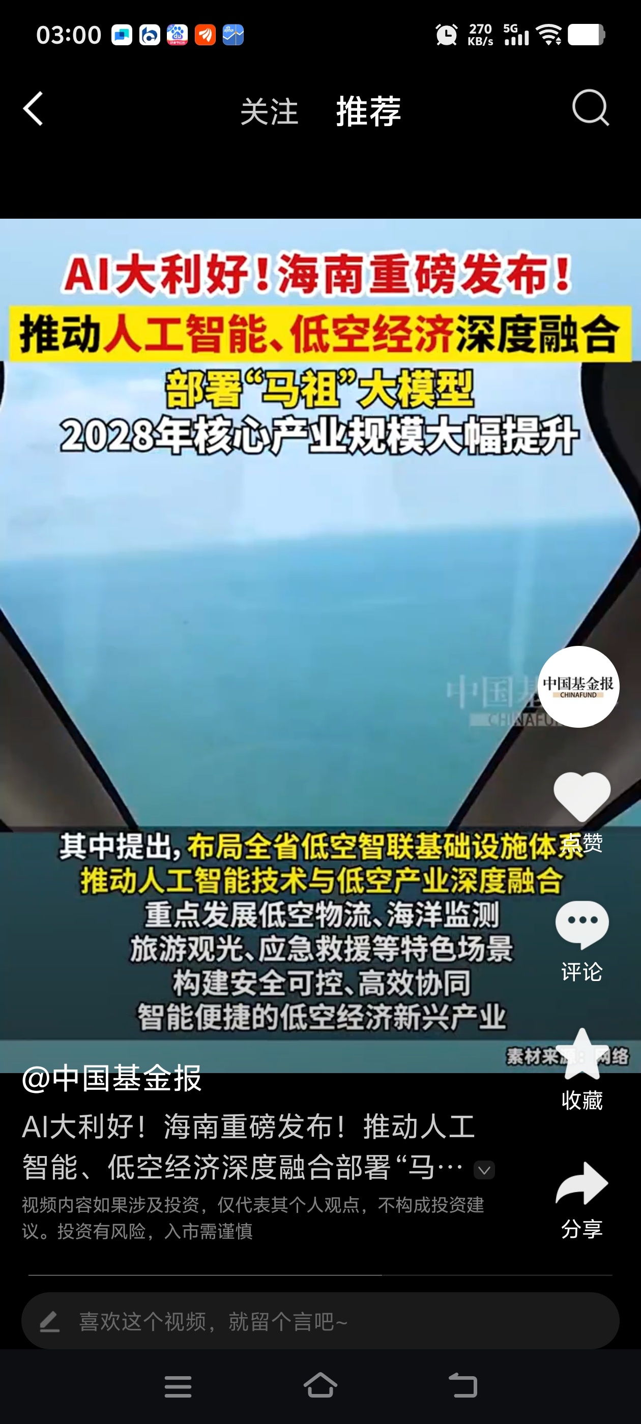 $海兰信(SZ300065)$ 重点发展人工智能(海兰信在海南有海底数据中心),海洋监测(这不海兰信主业嘛),商业航天(海上回收龙头嘛)。