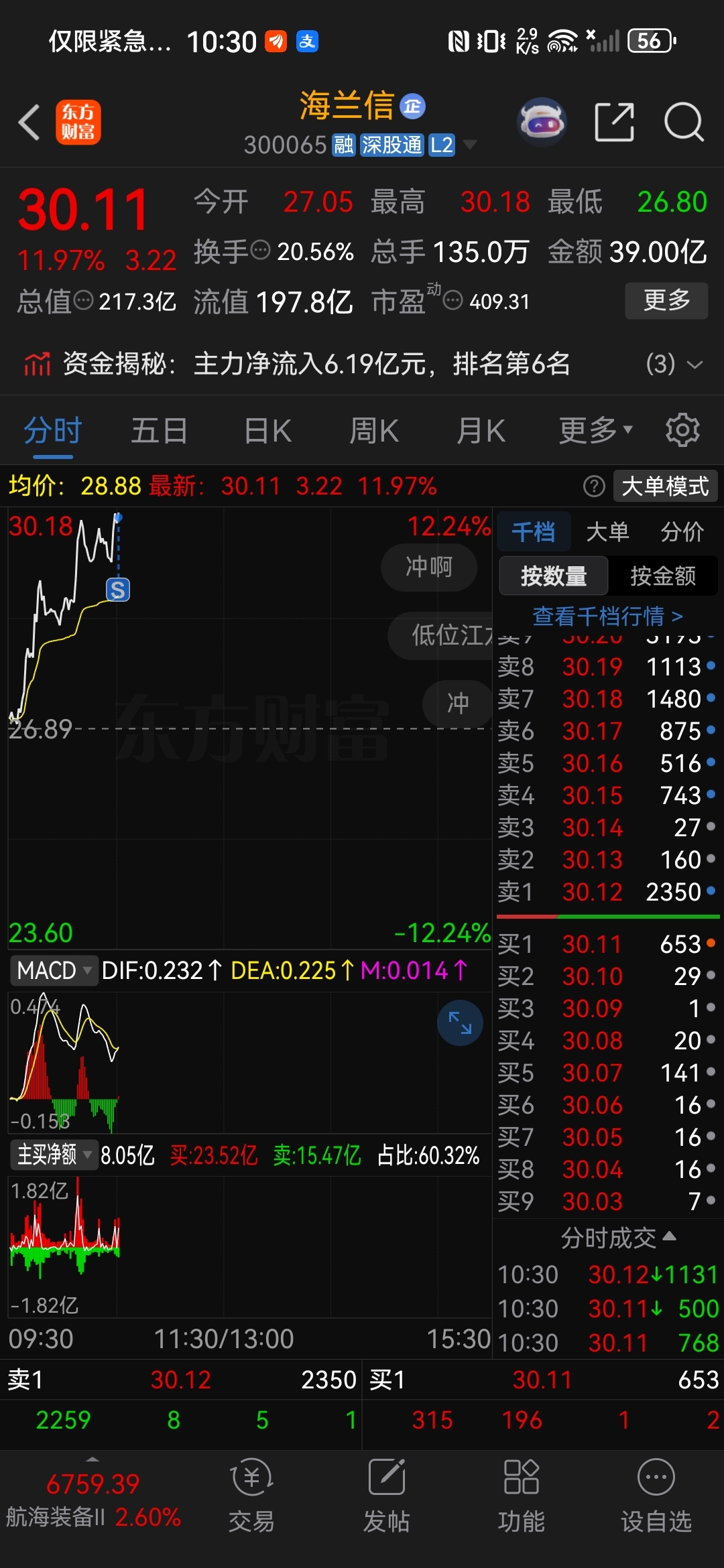 $海兰信(SZ300065)$ 卖一半给你,可以起飞了吧,我最喜欢卖飞了