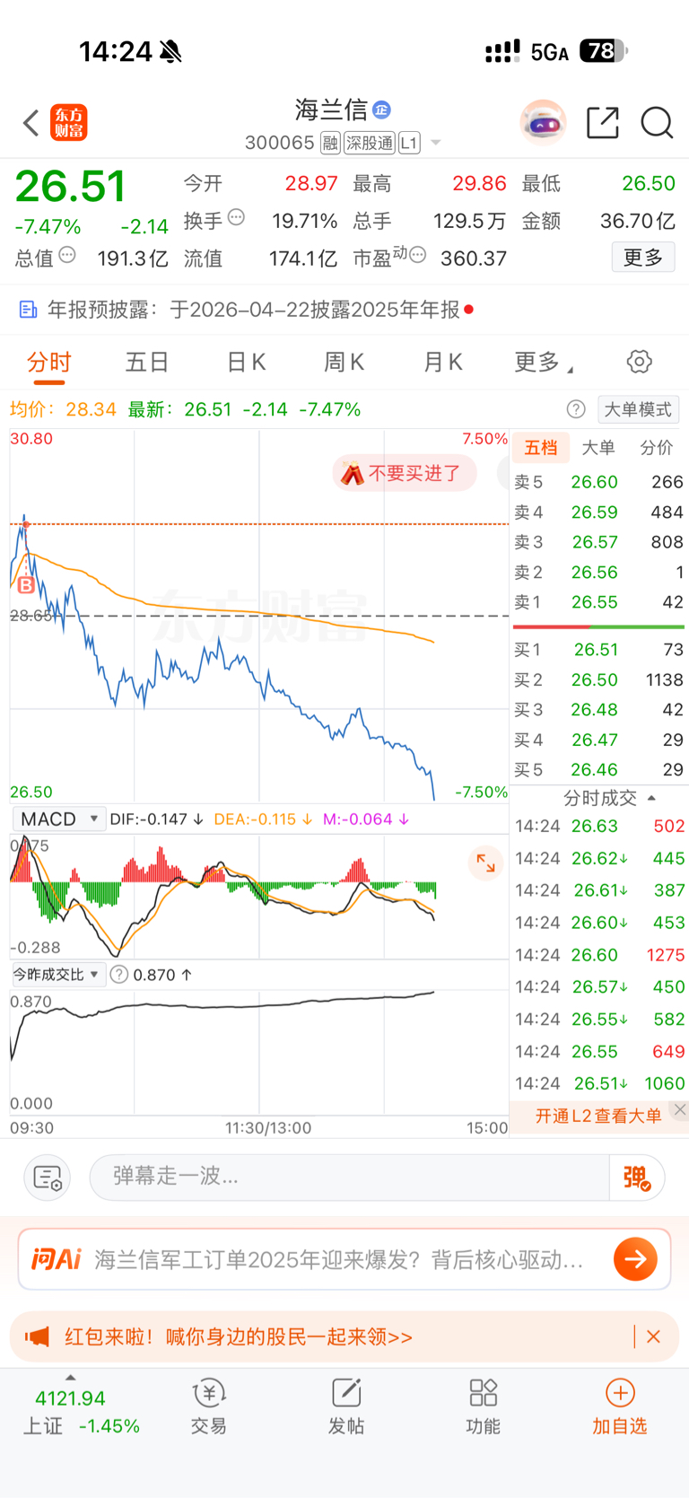 $海兰信(SZ300065)$ 妈呀妈呀