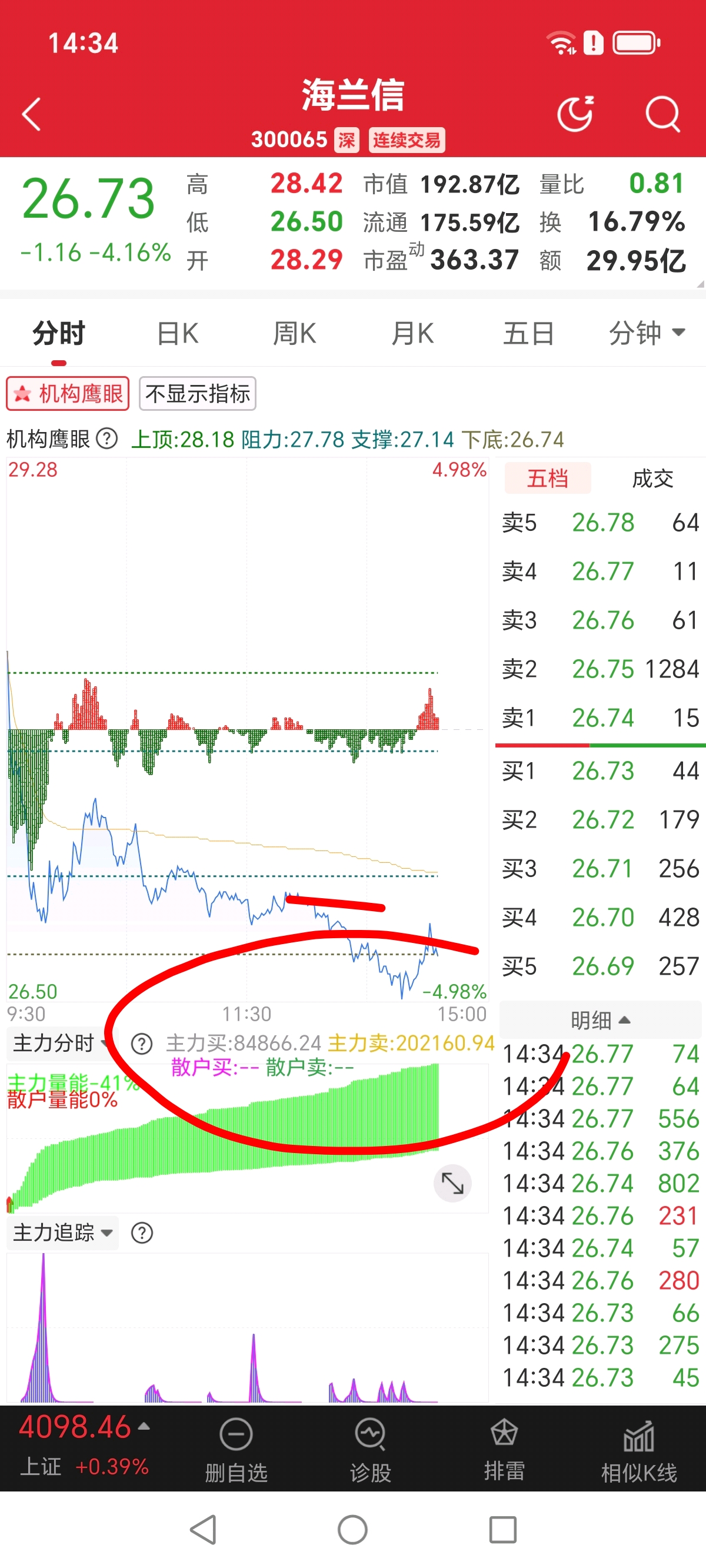 $海兰信(SZ300065)$ 主力出了12个亿,明天危险了