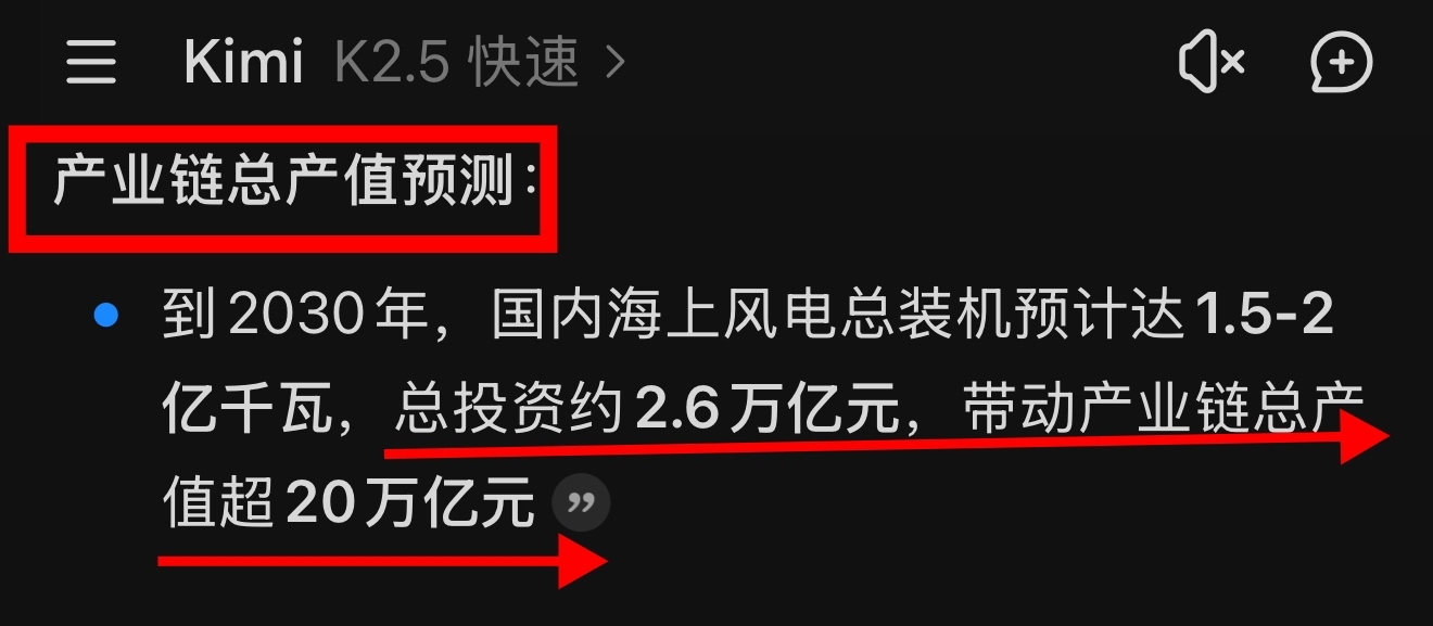中国海上风电产总业链预测:到2030年4年期间,中国海上风电总投资约2.6万亿元,带动产业链总产值超20万亿元!